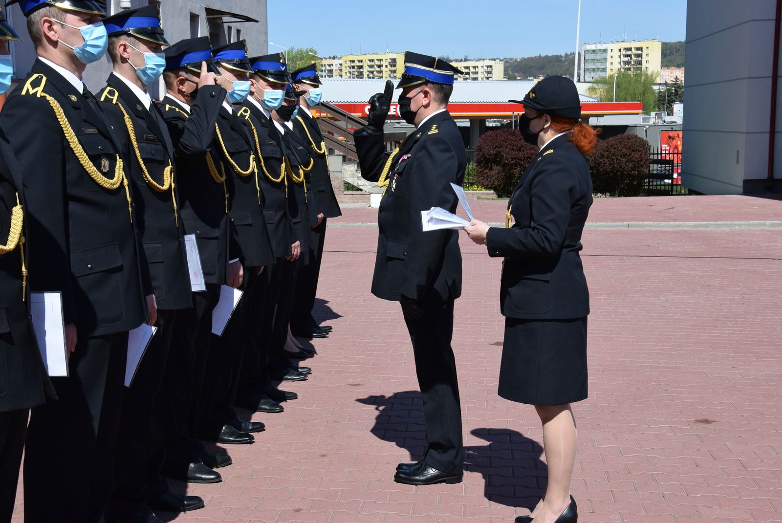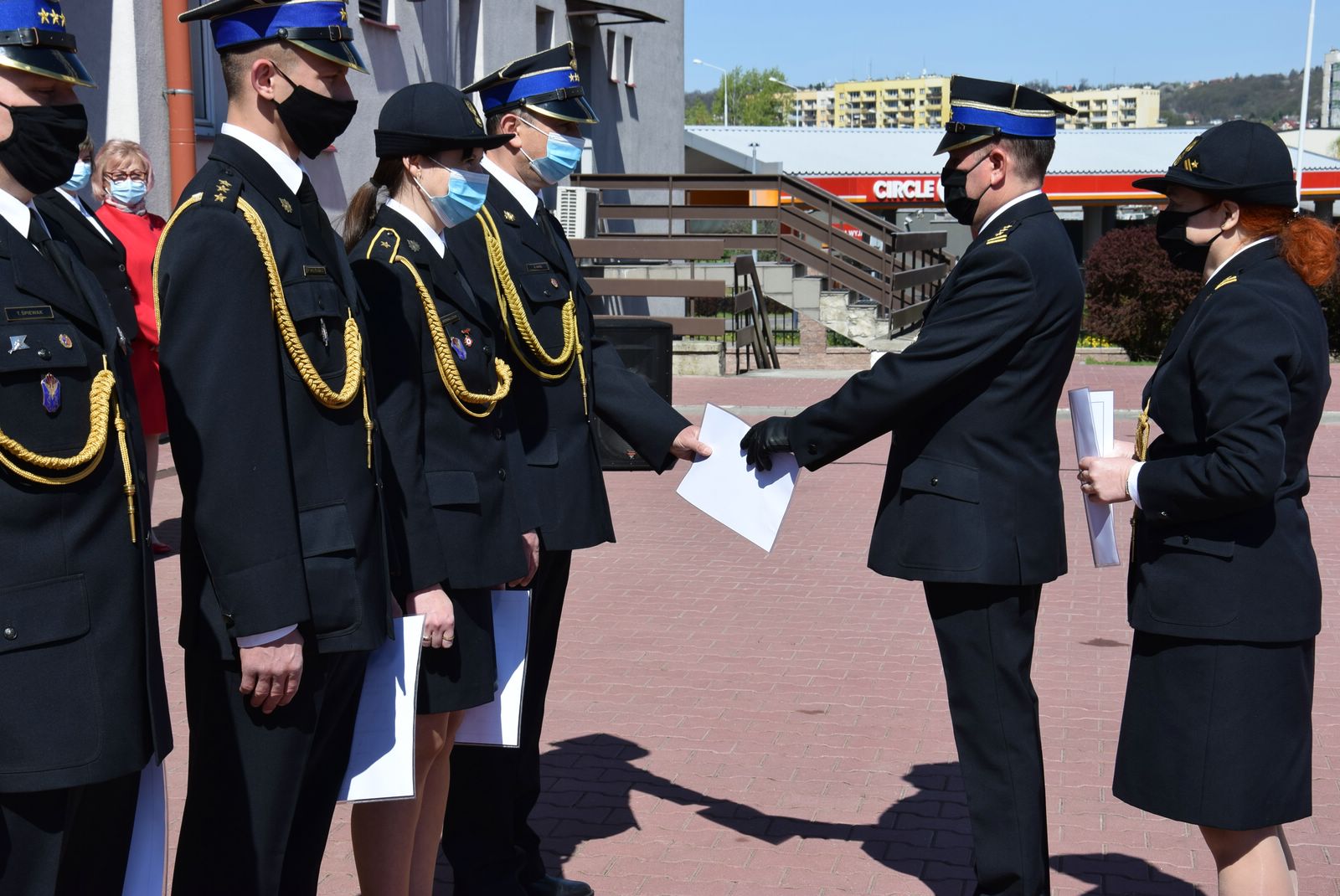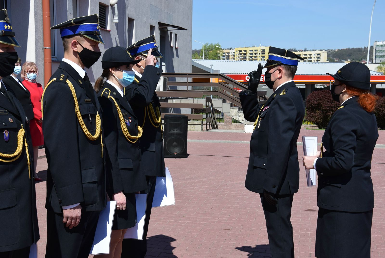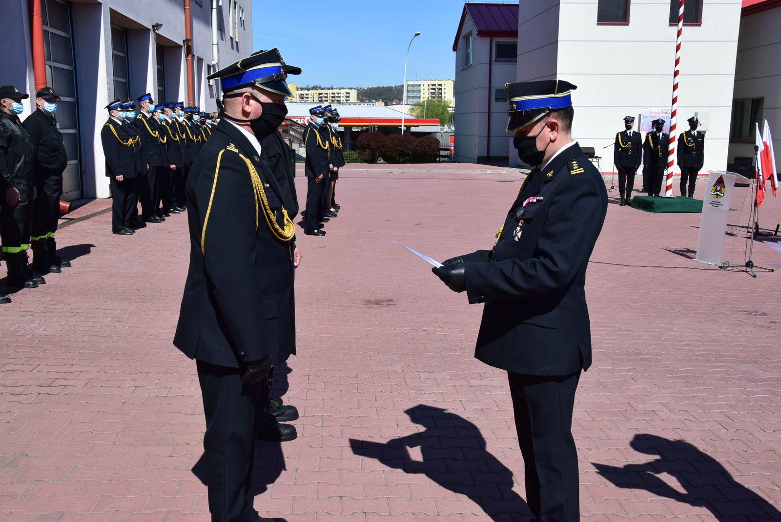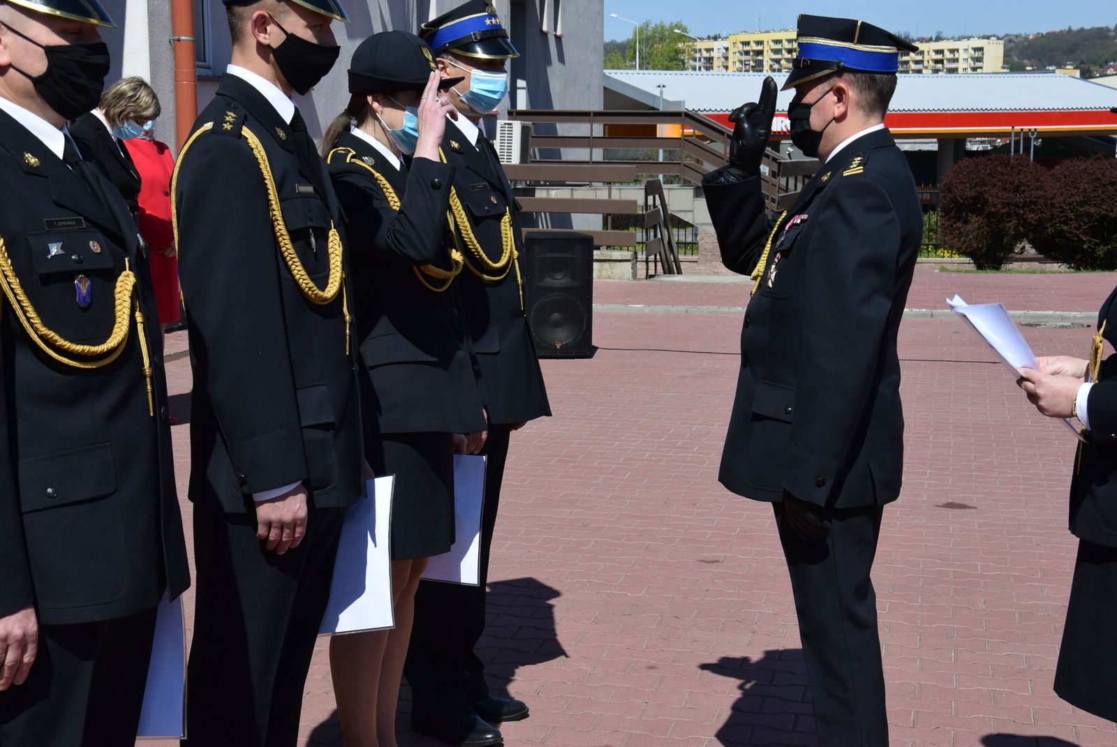 Podczas uroczystości zostały odczytane wyciągi z rozkazów personalnych o nadaniu wyższych stopni służbowych dla funkcjonariuszy z Komendy Miejskiej PSP w Przemyślu.