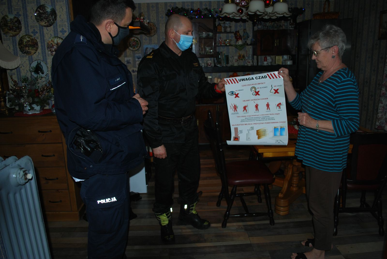 W związku z tym podczas odwiedzin posesyjnych policjanci oraz strażacy przypominają mieszkańcom o zachowaniu szczególnej ostrożności podczas korzystania z różnego rodzaju urządzeń grzewczych, również informują jak obchodzić się z ogniem i zachować podczas pożaru oraz jak uniknąć zatrucia tlenkiem węgla.
