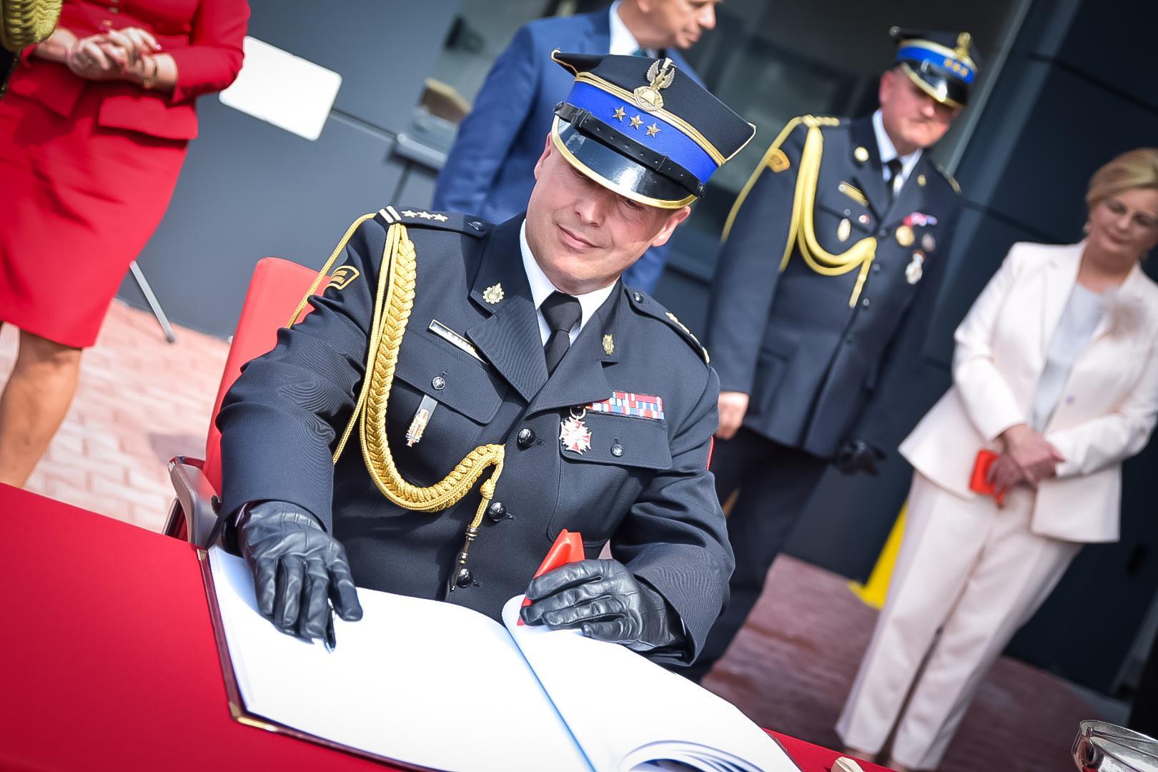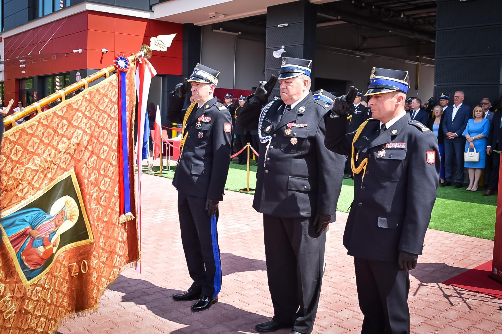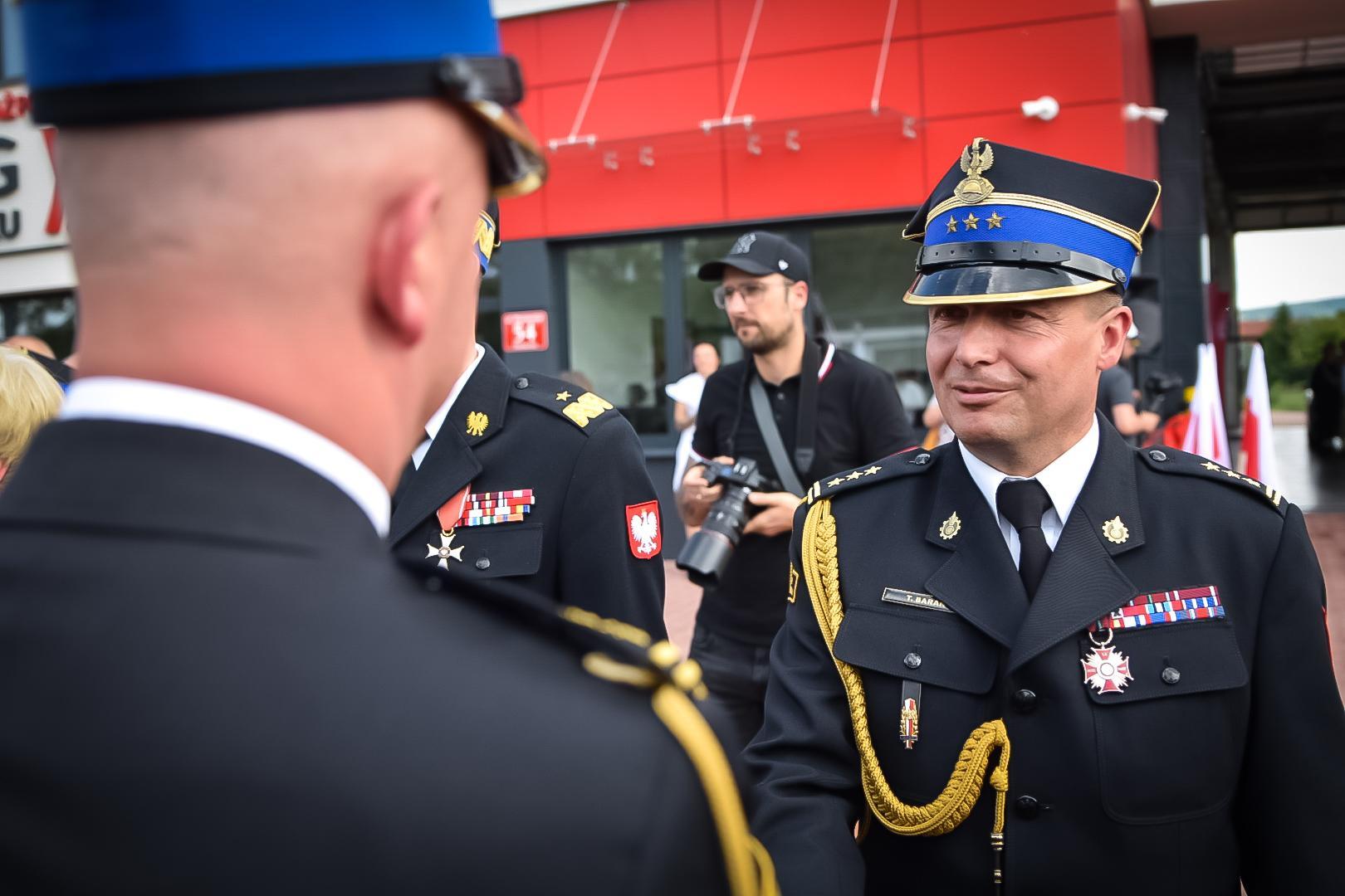 Po Eucharystii zaproszeni goście udali się do Jednostki Ratowniczo-Gaśniczej PSP. Tutaj odbyły się główne uroczystości, które rozpoczęto złożeniem meldunku komendantowi głównemu PSP nadbryg. dr. inż. Mariuszowi Feltynowskiemu.