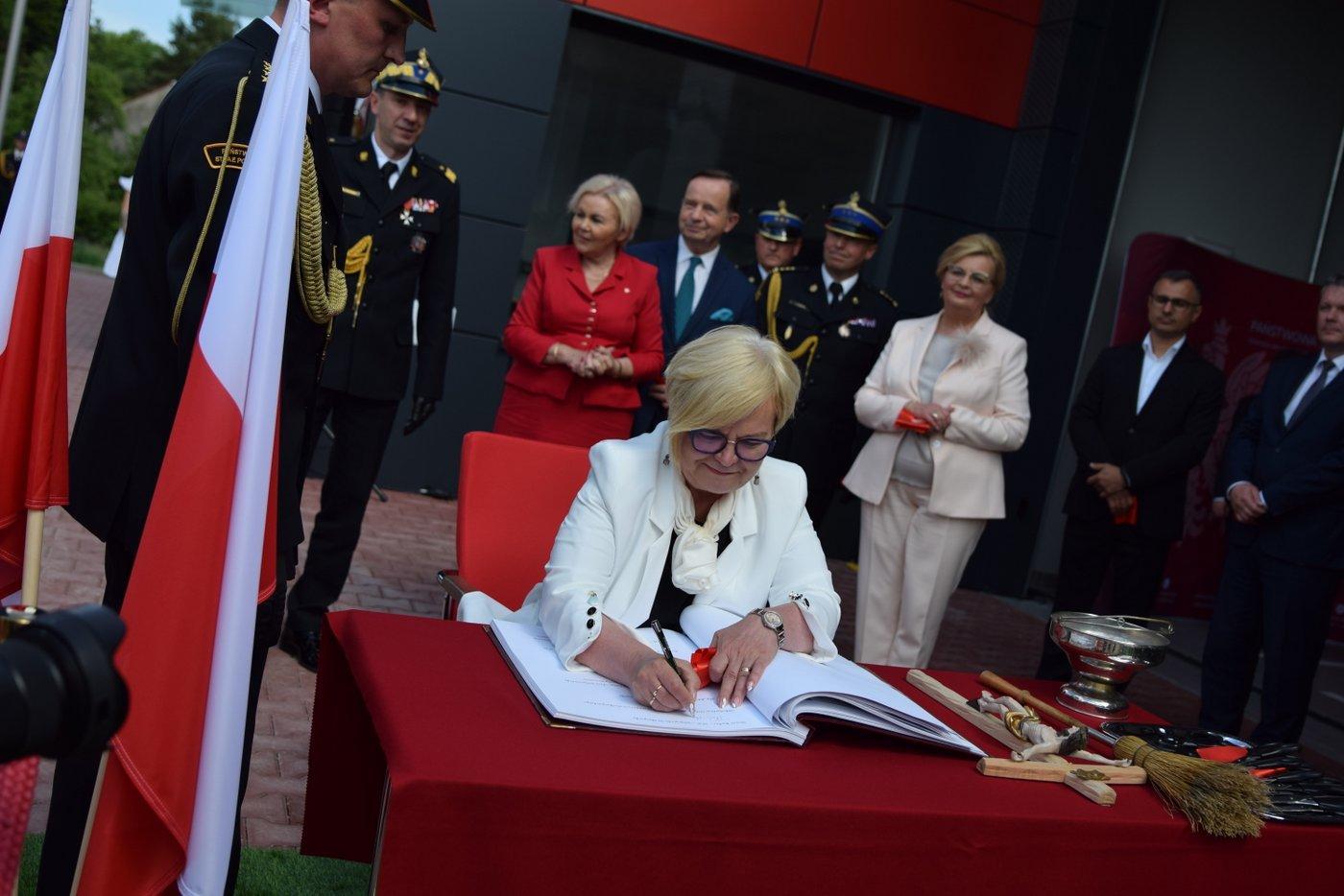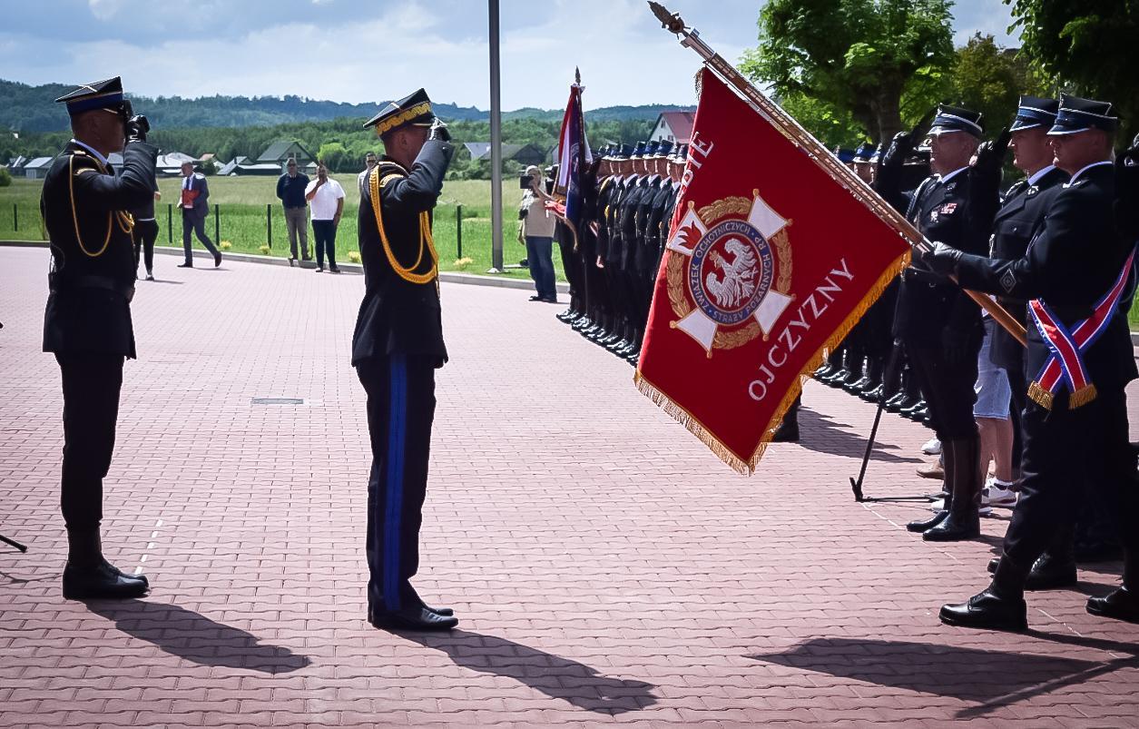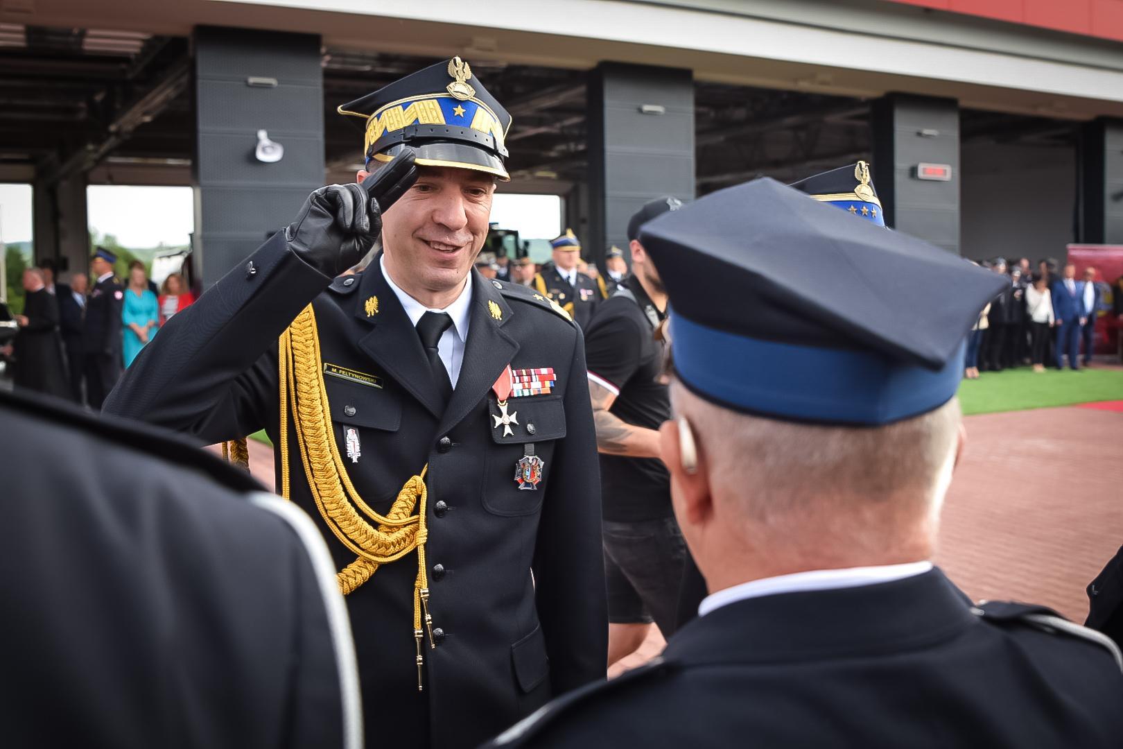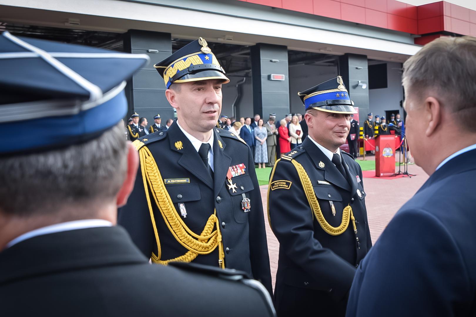 Po Eucharystii zaproszeni goście udali się do Jednostki Ratowniczo-Gaśniczej PSP. Tutaj odbyły się główne uroczystości, które rozpoczęto złożeniem meldunku komendantowi głównemu PSP nadbryg. dr. inż. Mariuszowi Feltynowskiemu.