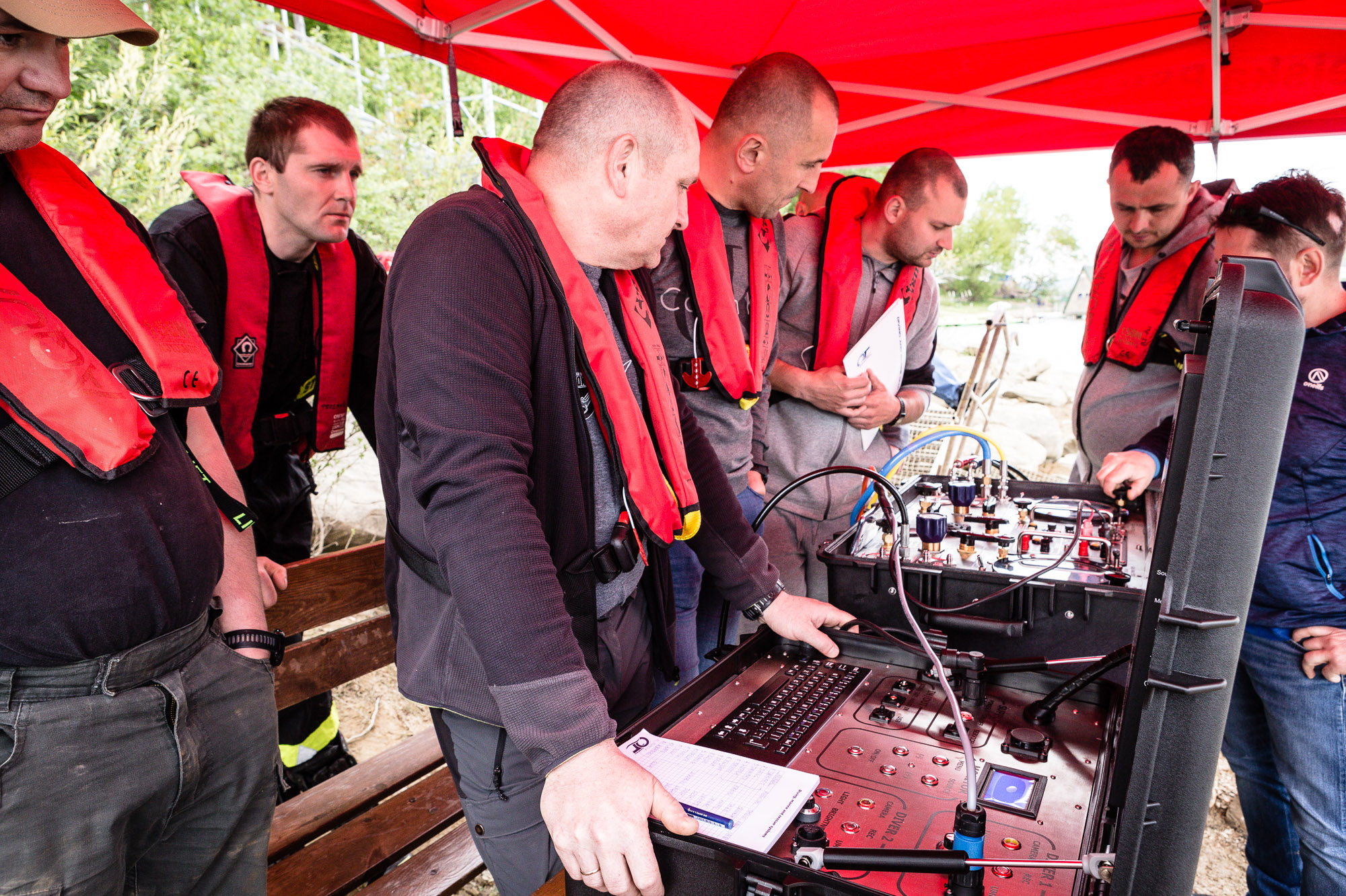 W dniach od 23-30.05.2021 na Poligonie szkoleń wodnych w Polańczyku odbyło się szkolenie z obsługi i użytkowania hełmów twardych Kirby Morgan współpracujących z systemem zasilania przewodowego, przeznaczonych do prac w wodach zanieczyszczonych i skażonych. Zestaw dwóch hełmów Kirby Morgan KM 37 wraz z osprzętem jest na wyposażeniu Specjalistycznej Grupy Wodno-Nurkowej przy KM PSP w Przemyślu.