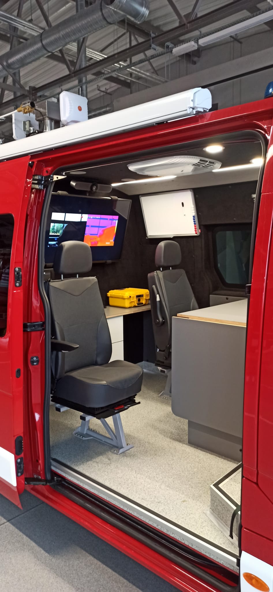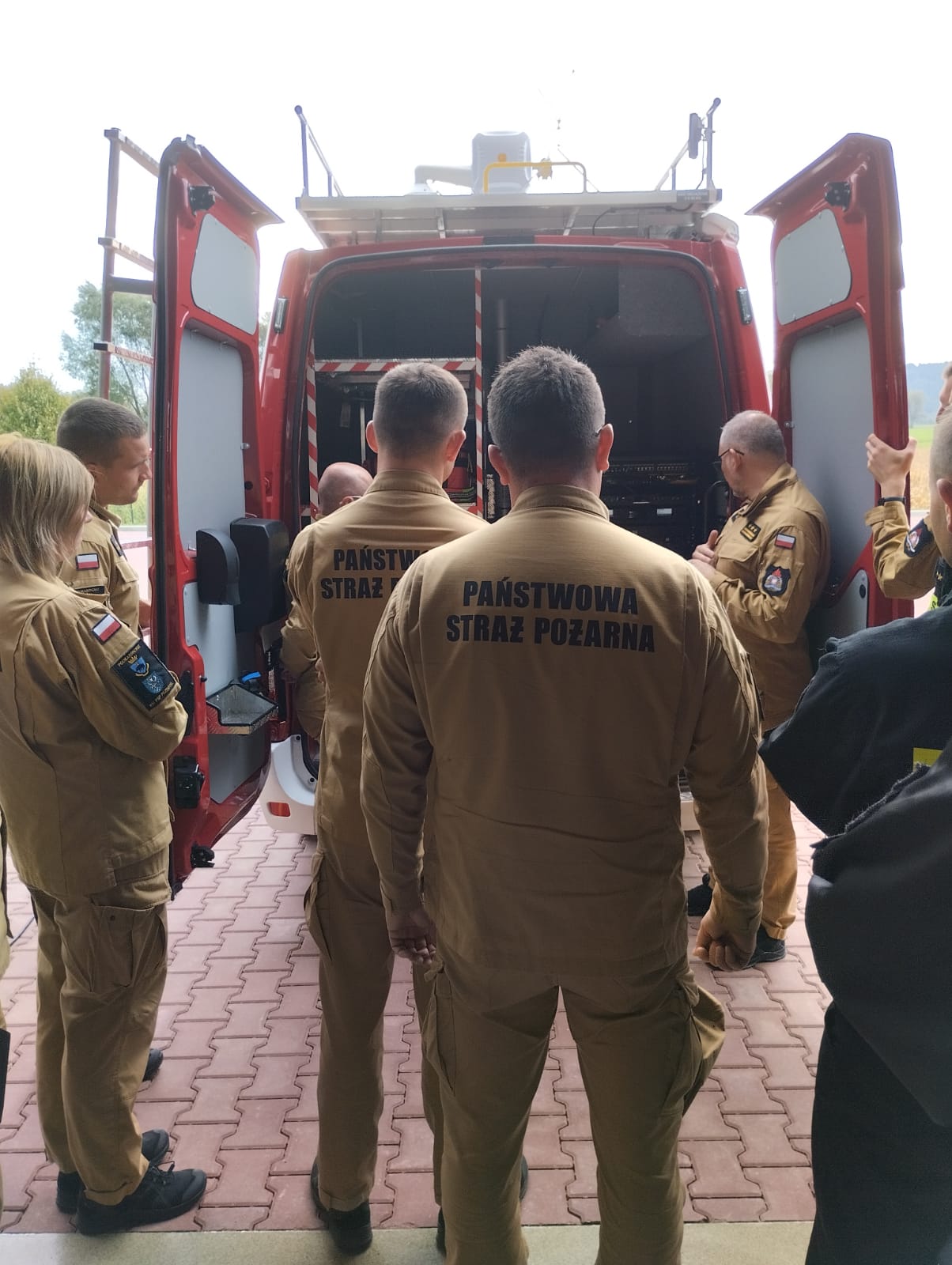 W szkoleniu prowadzonym przez st. bryg. Waldemara Wilka z KW PSP Rzeszów uczestniczyli na czele z Zastępcą Komendanta Miejskiego PSP w Przemyślu bryg. A. Garusem funkcjonariusze Wydziału Operacyjnego, Z-ca Dowódcy JRG Przemyśl oraz dyżurni Stanowiska Kierowania przemyskiej komendy. Celem w/w szkolenia było zapoznanie z technicznymi możliwościami samochodu, który biorąc pod uwagę jego wyposażenie może pracować jako mobilne Stanowisko Kierowania. Pojazd dysponuje również wysuwanym masztem z głowicą obrotową posiadającą kamerę zwykłą i termowizyjną, a dodatkowym atutem jest posiadanie specjalnego Systemu Transmisji Obrazu, który umożliwia przesyłanie go w czasie rzeczywistym bezpośrednio z miejsca działań do Stanowisk Kierowania KM, KW oraz KG PSP.