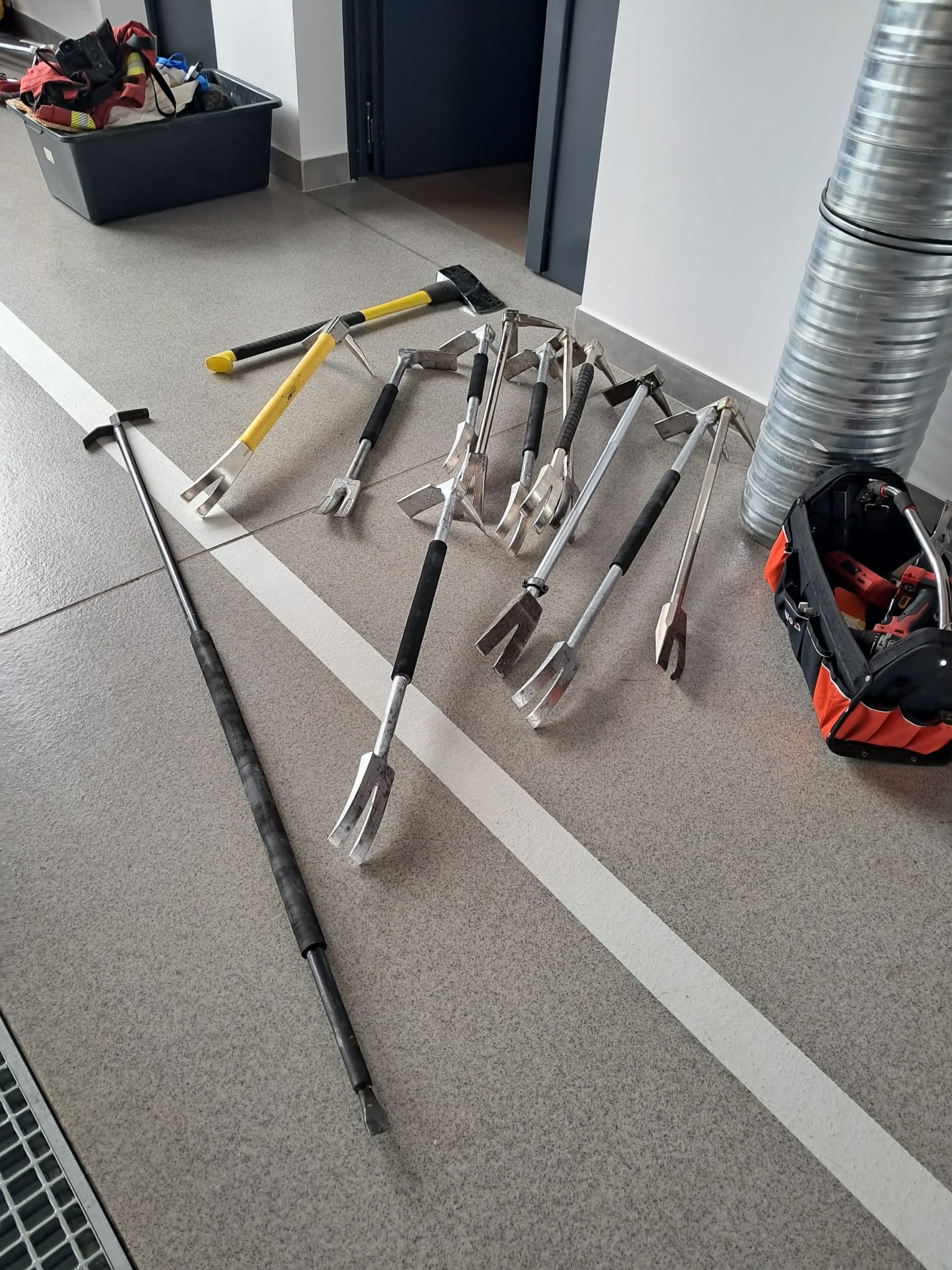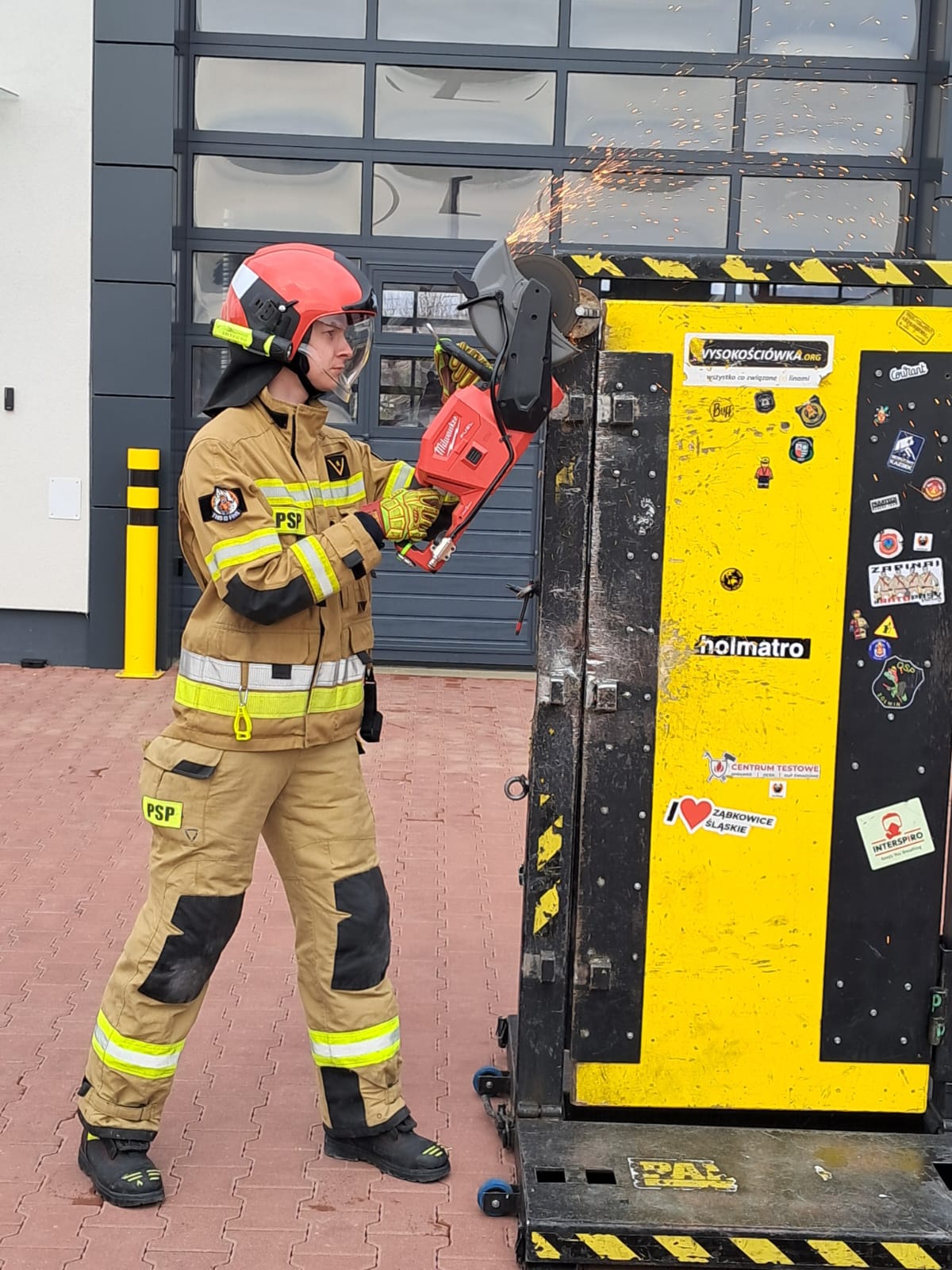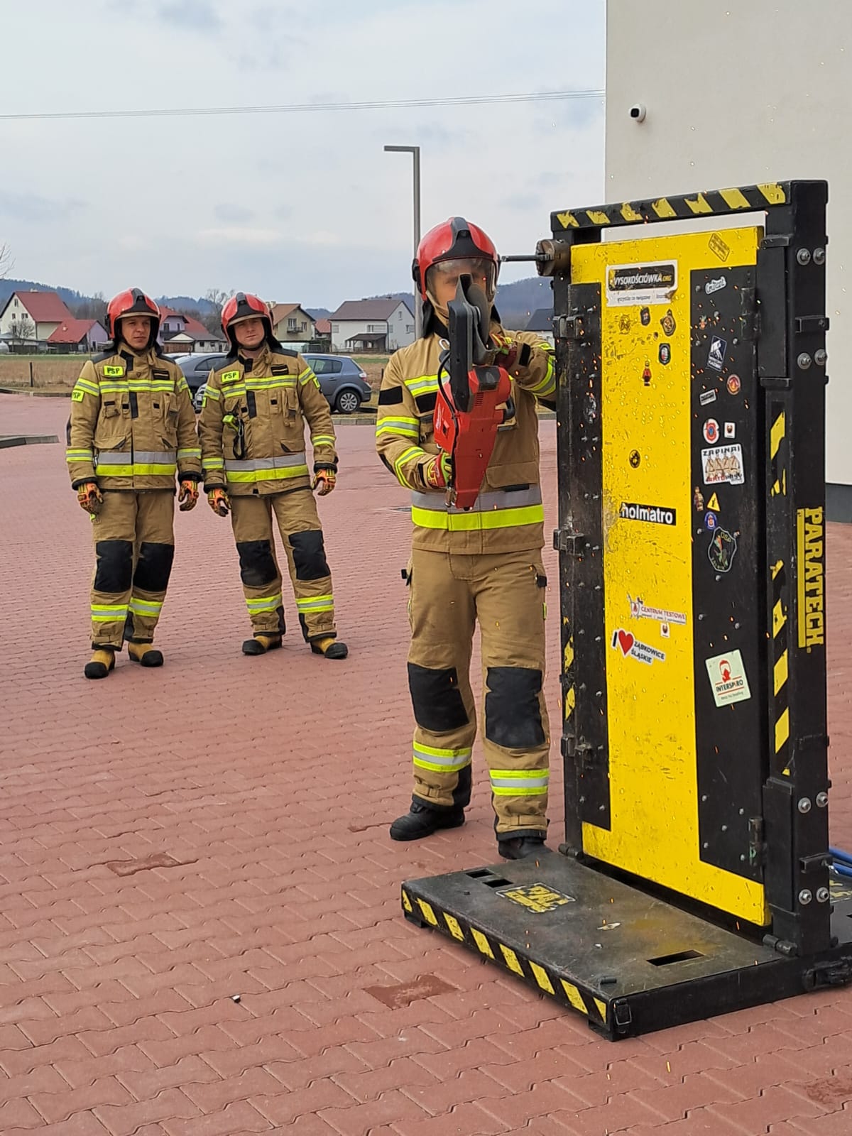 W trakcie długiej i wymagającej praktyki strażacy obu jednostek mieli możliwość ćwiczyć na wielu rodzajach sprzętu zaczynając od młota i Hooligan’a, a kończąc na specjalistycznym urządzeniu do wyłamywania wkładek w drzwiach.
