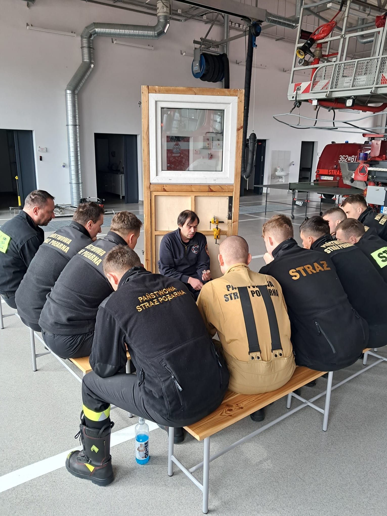 Część teoretyczna szkolenia polegała na przedstawieniu sprzętu wykorzystywanego przy siłowym otwieraniu drzwi. Następnie rozpoczęto część praktyczną, która została poprzedzona instruktażem BHP oraz zasadami postępowania podczas zdarzeń związanych