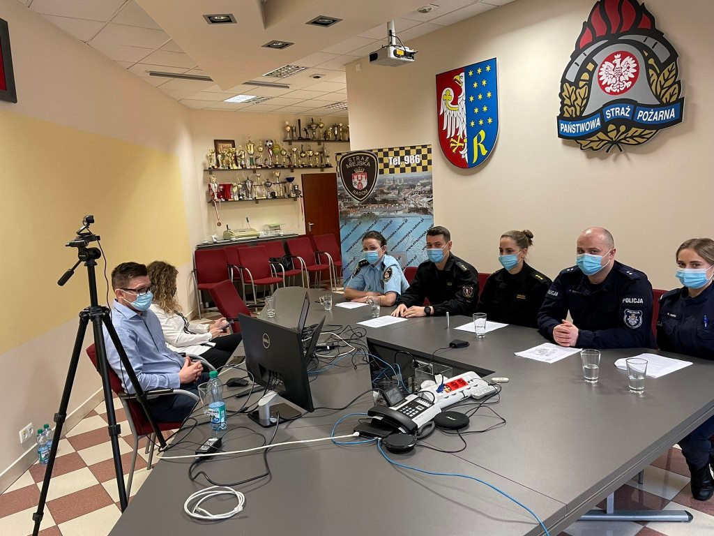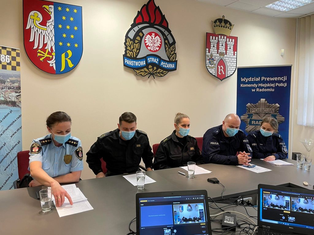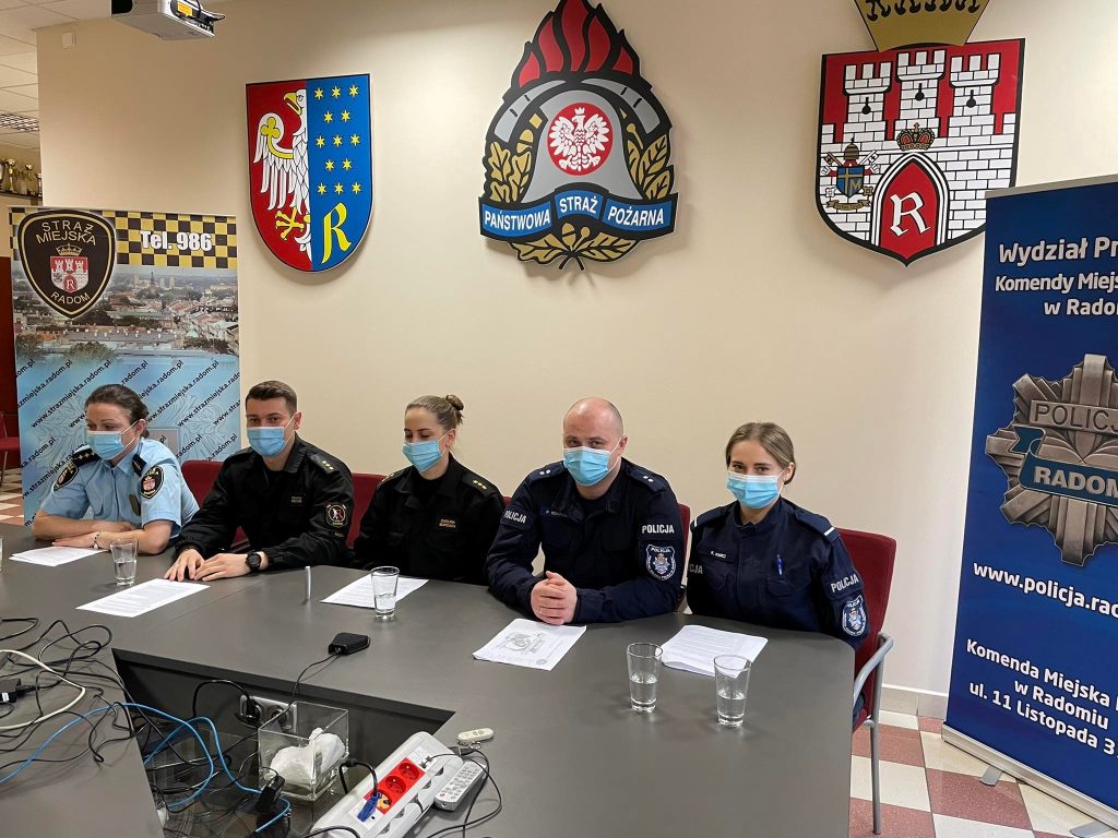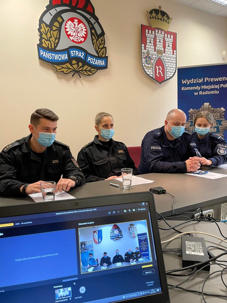 Spotkania odbyły się o godz. 9.00 oraz o godz. 13.00 na platformie TEAMS. Prelegentami zajęć byli funkcjonariusze Komendy Miejskiej Państwowej Straży Pożarnej w Radomiu, Komendy Miejskiej Policji w Radomiu oraz Straży Miejskiej w Radomiu. Podczas zajęć omówiono tematykę związaną z bezpieczeństwem na lodowiskach, zagrożeniami sezonu grzewczego, ceberbezpieczeństwem oraz bezpieczeństwem na drodze.