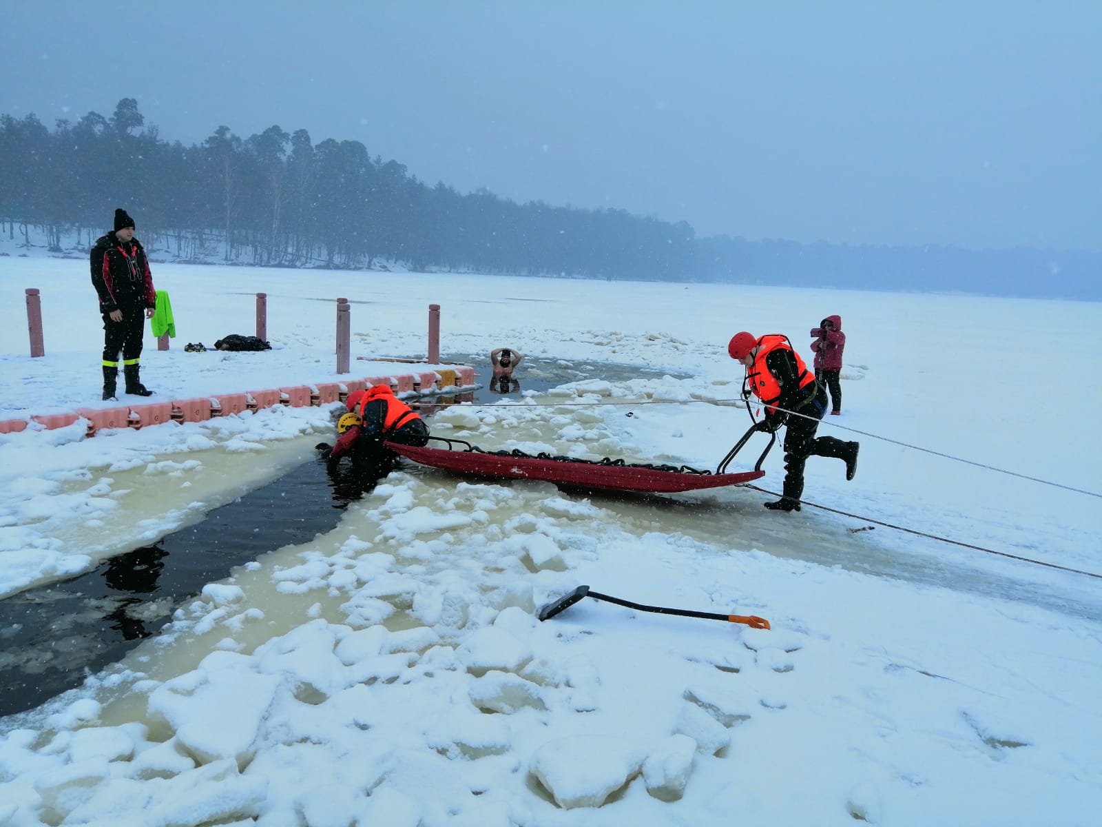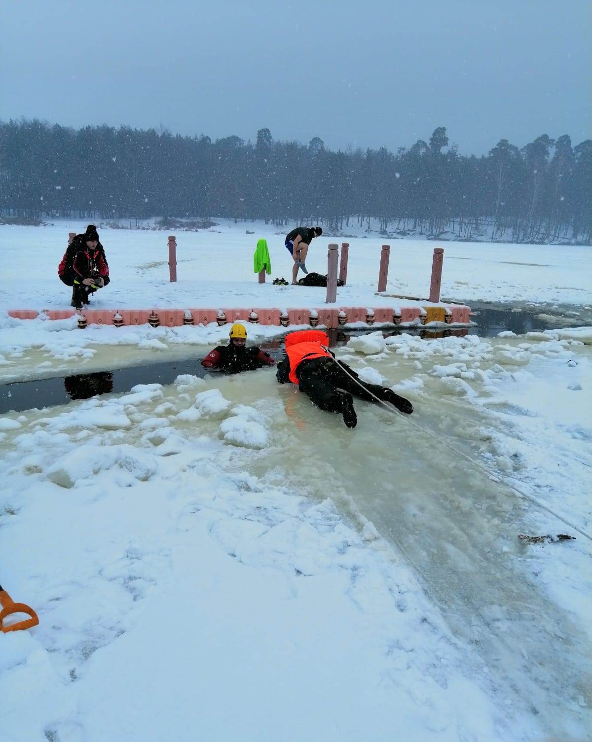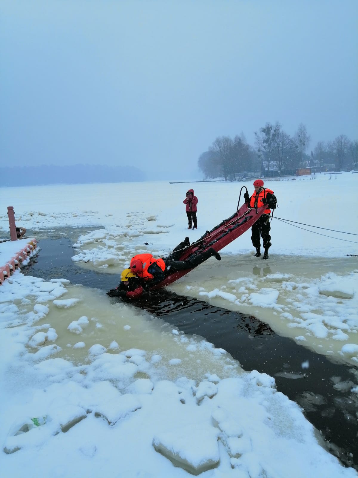 Ćwiczenia na zamarzniętych akwenach wodnych w miejscowości Siczki