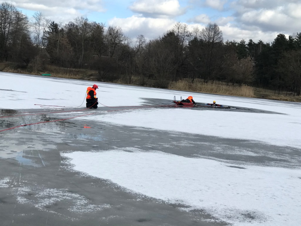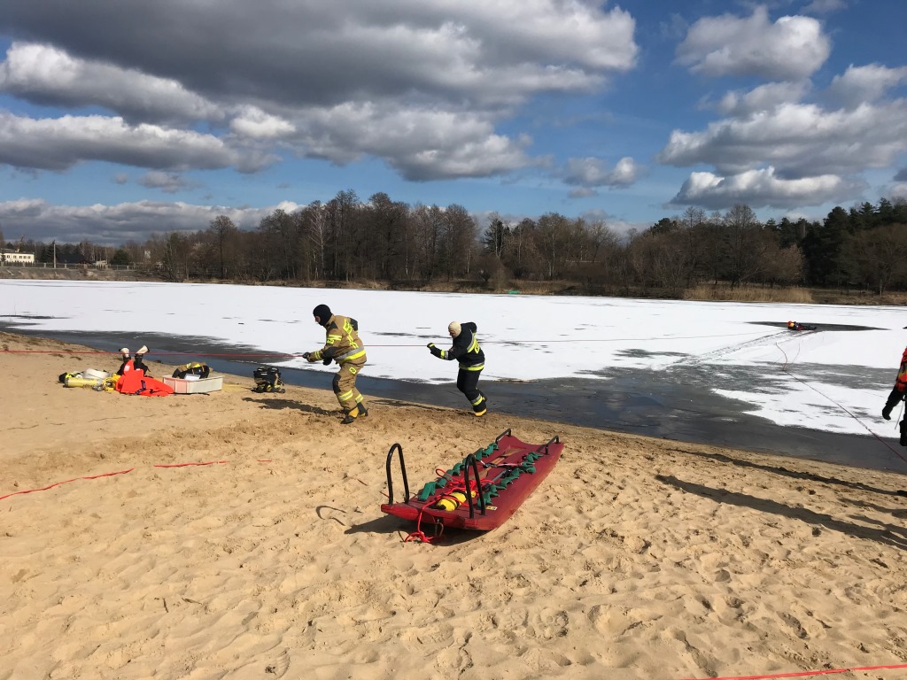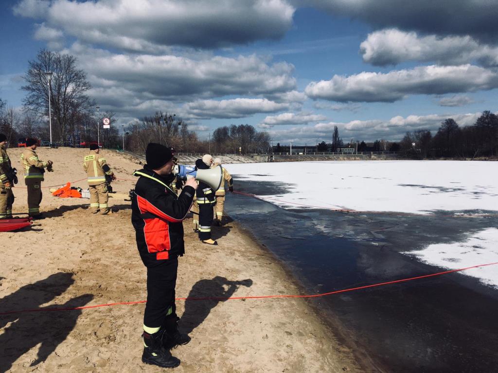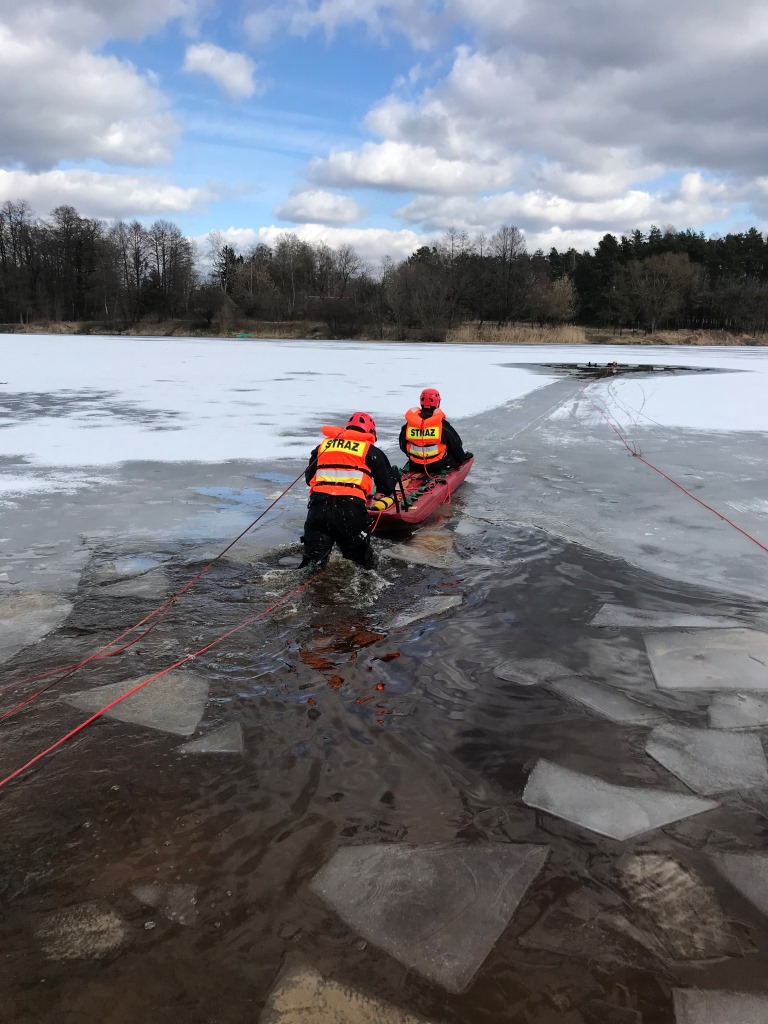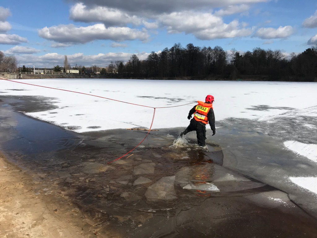 Założeniem do ćwiczeń było doskonalenie techniki ratowniczych wykorzystywanych podczas działań ratowniczych na zamarzniętych akwenach wodnych wobec osób pod którymi załamał się lód. .