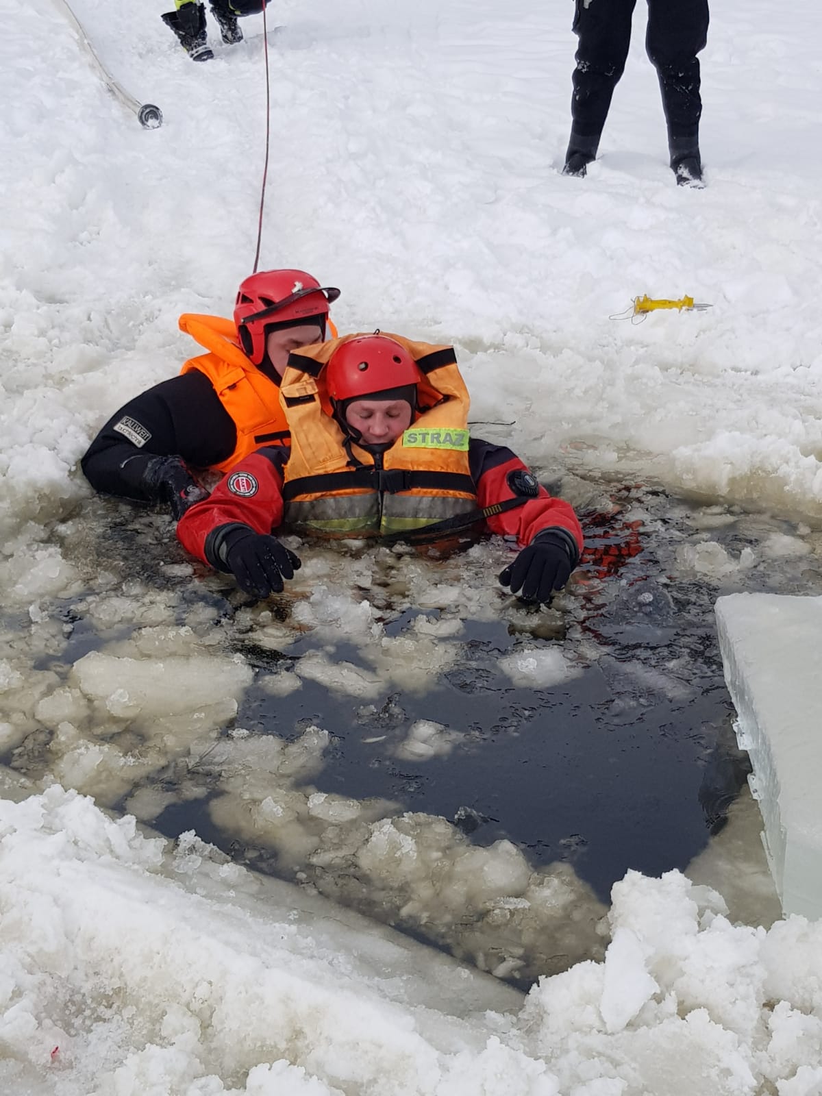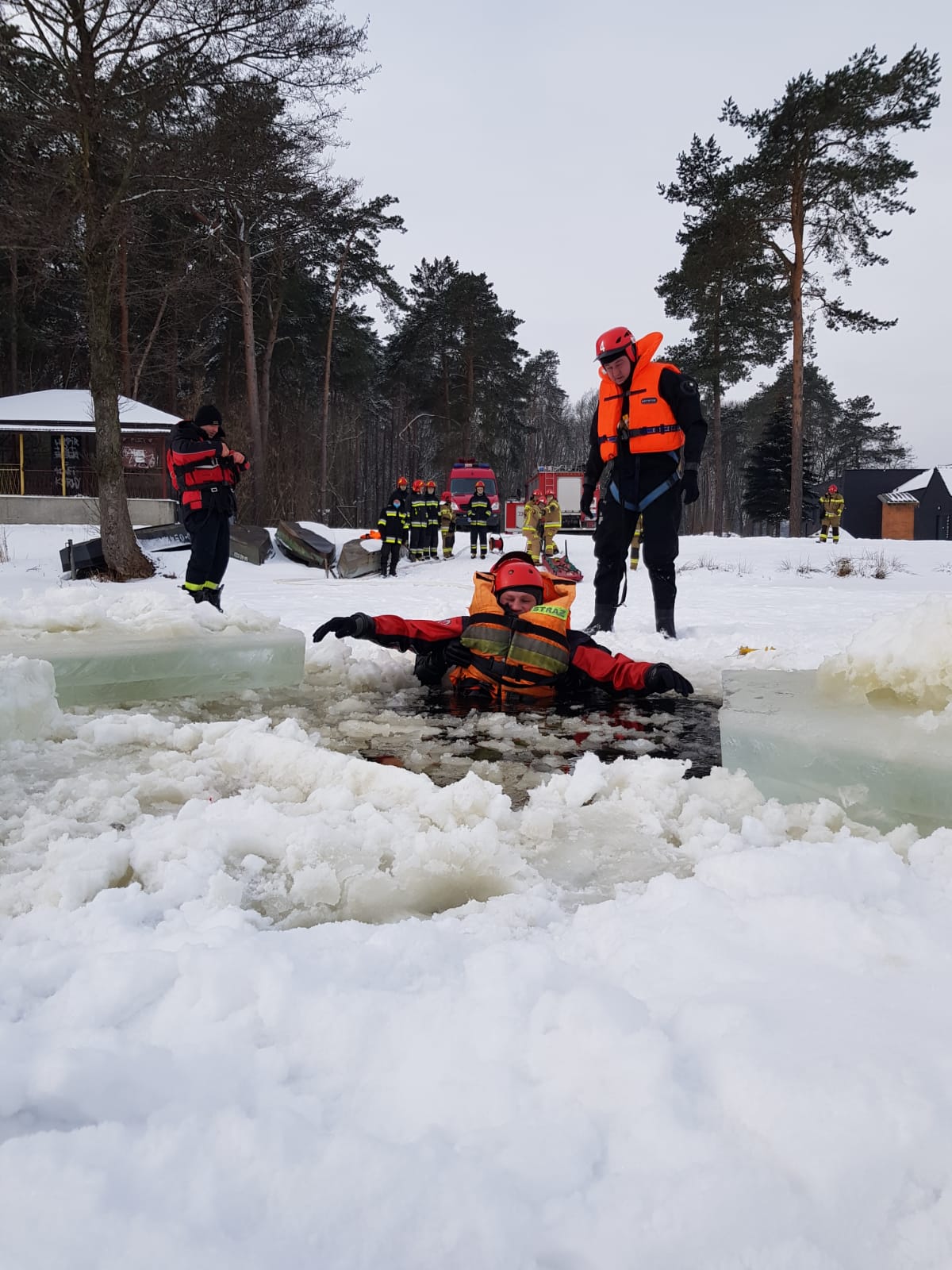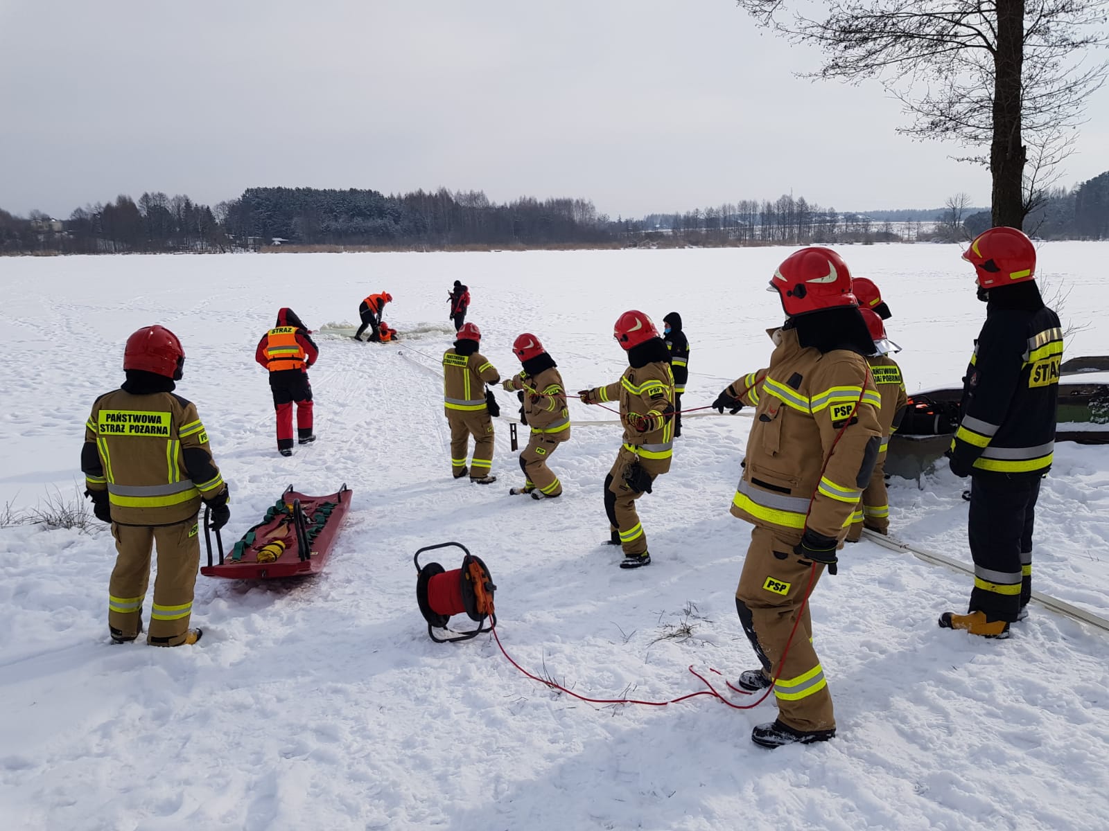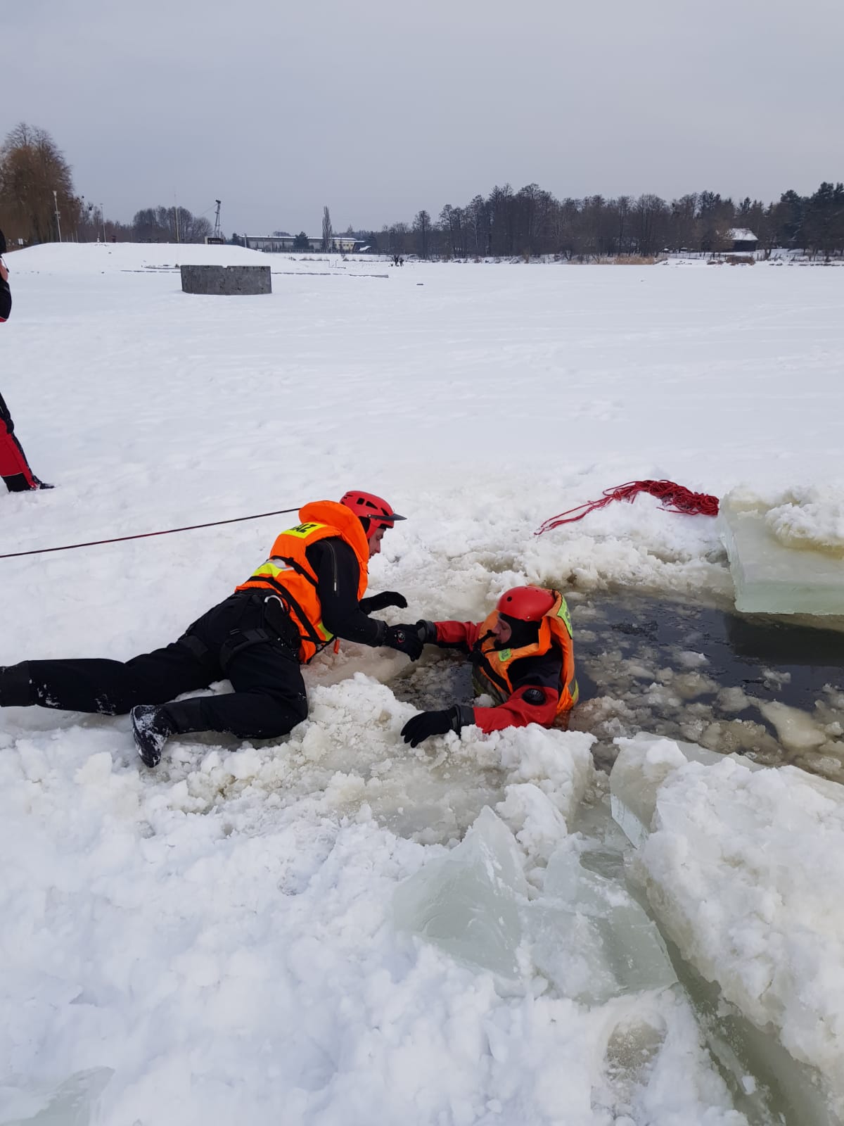Założeniem do ćwiczeń było doskonalenie techniki ratowniczych wykorzystywanych podczas działań ratowniczych na zamarzniętych akwenach wodnych.
