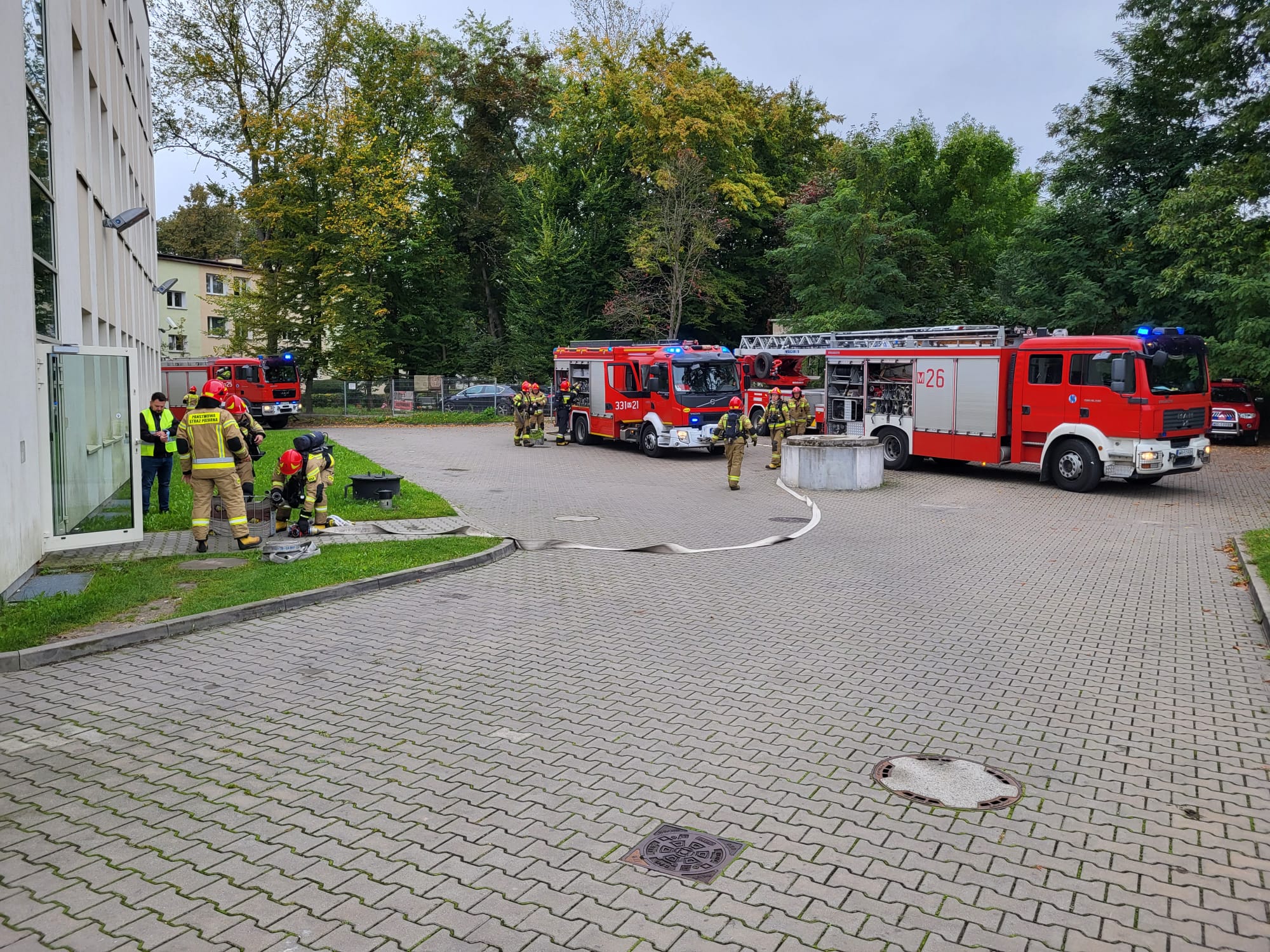 19.09. 2022 roku na terenie Radomskiego Centrum Onkologii im. Bohaterów Radomskiego Czerwca ’76 przy ulicy Uniwersyteckiej, zastępy Państwowej Straży Pożarnej z Komendy Miejskiej PSP w Radomiu prowadziła ćwiczenia z zakresu ewakuacji oraz prowadzenia działań ratowniczych podczas pożaru.