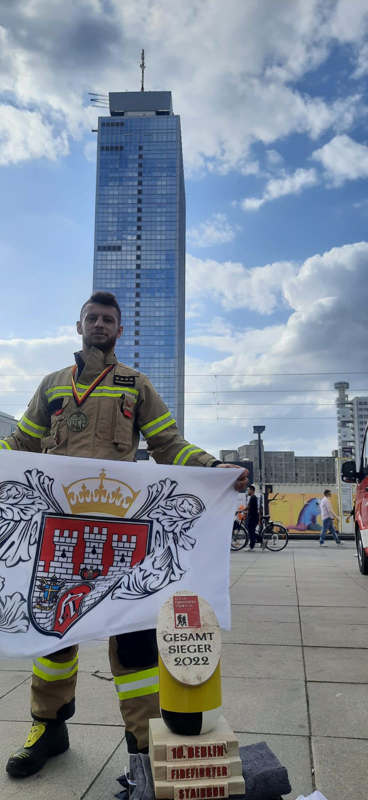 14 maja 2022 roku odbyły się zawody strażackie, które polegały na wbiegnięciu na 39 piętro wieżowca Park Inn w Berlinie przy Aleksanderplatz. Tor składał się z około 200 metrowego odcinka dobiegu do wieżowca i dalej po klatce schodowej na sam szczyt 110-cio metrowego budynku.