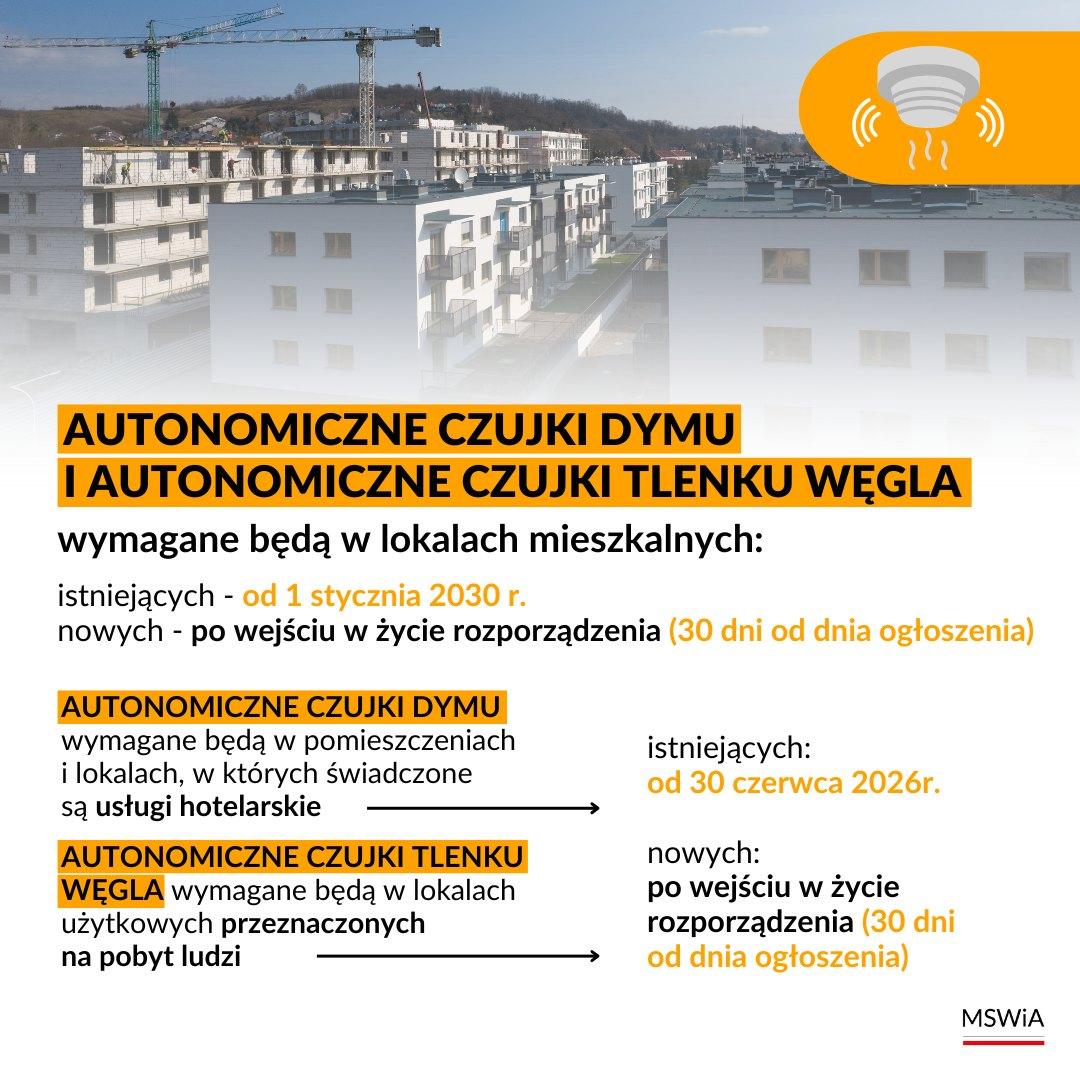 Zgodnie z nowelizacją rozporządzenia Ministra Spraw Wewnętrznych i Administracji w sprawie ochrony przeciwpożarowej budynków, innych obiektów budowlanych i terenów, wprowadzone zostały nowe wymagania dotyczące montażu autonomicznych czujek tlenku węgla (czadu) oraz autonomicznych czujek dymu.