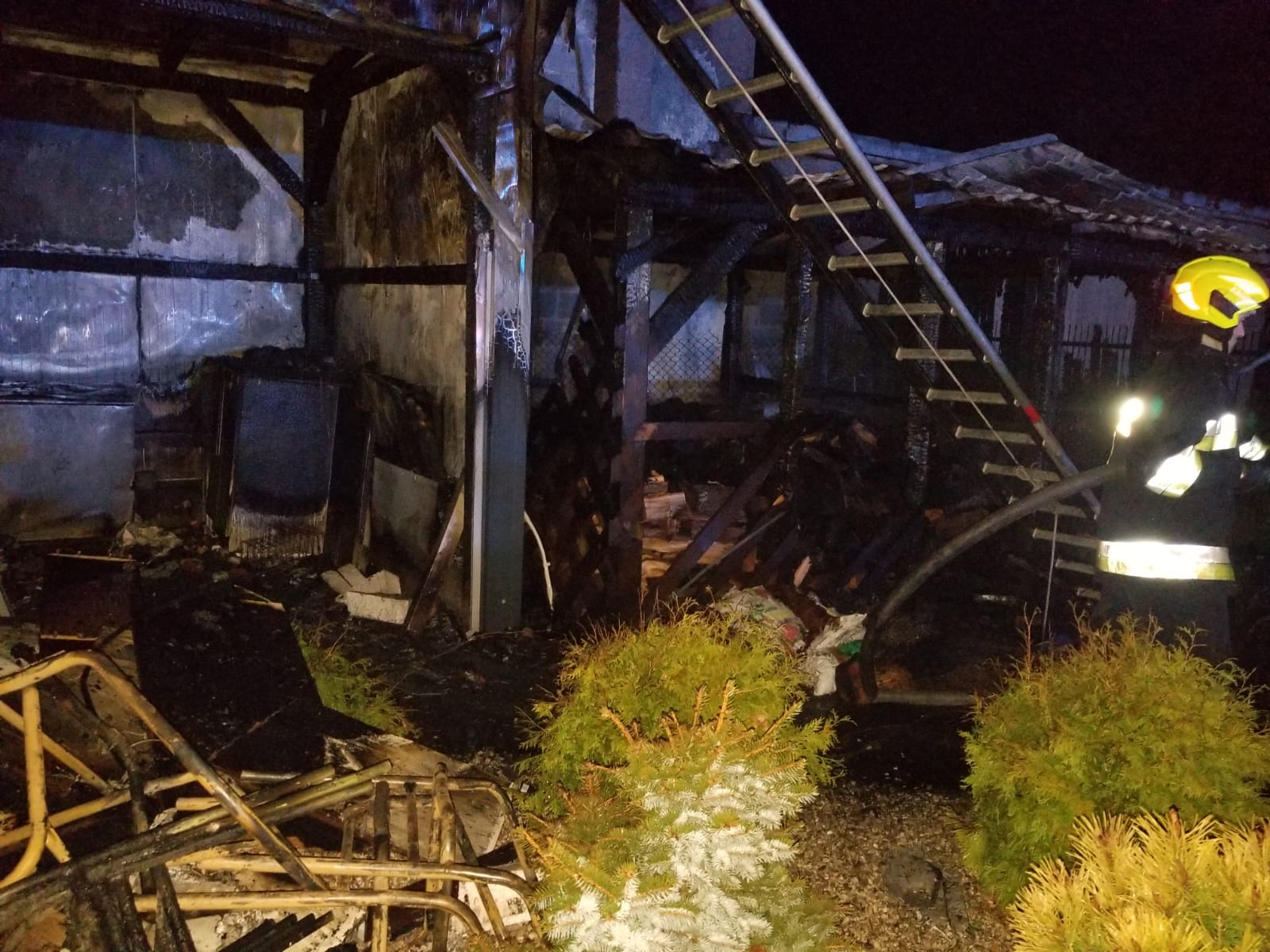 Pożar budynku mieszkalnego oraz wiaty na drzewo w miejscowości Jedlnia Letnisko