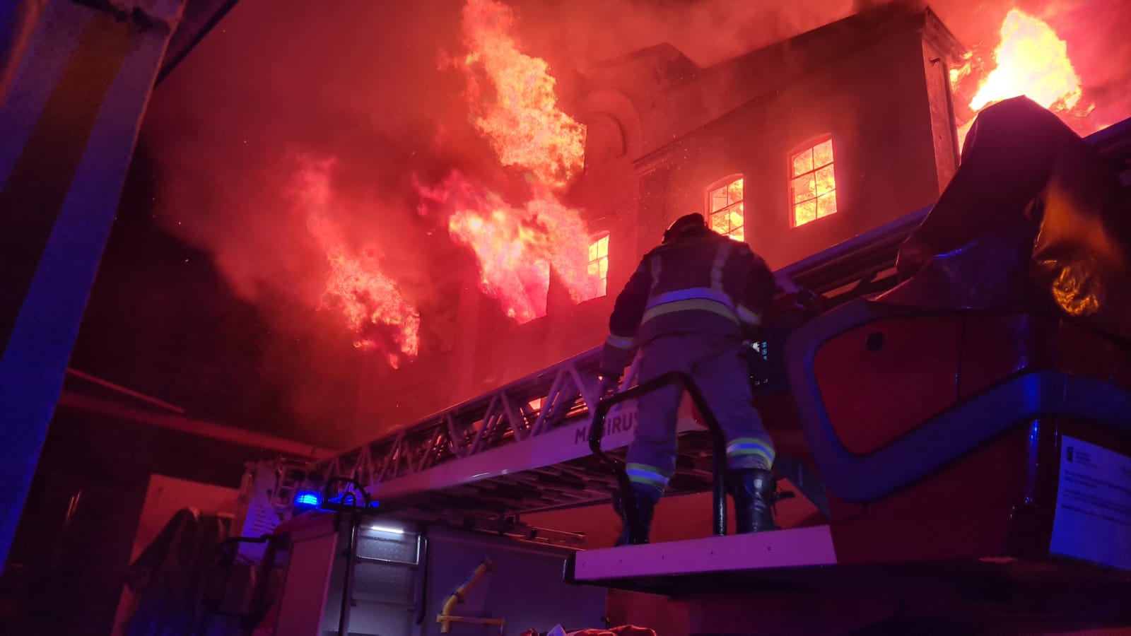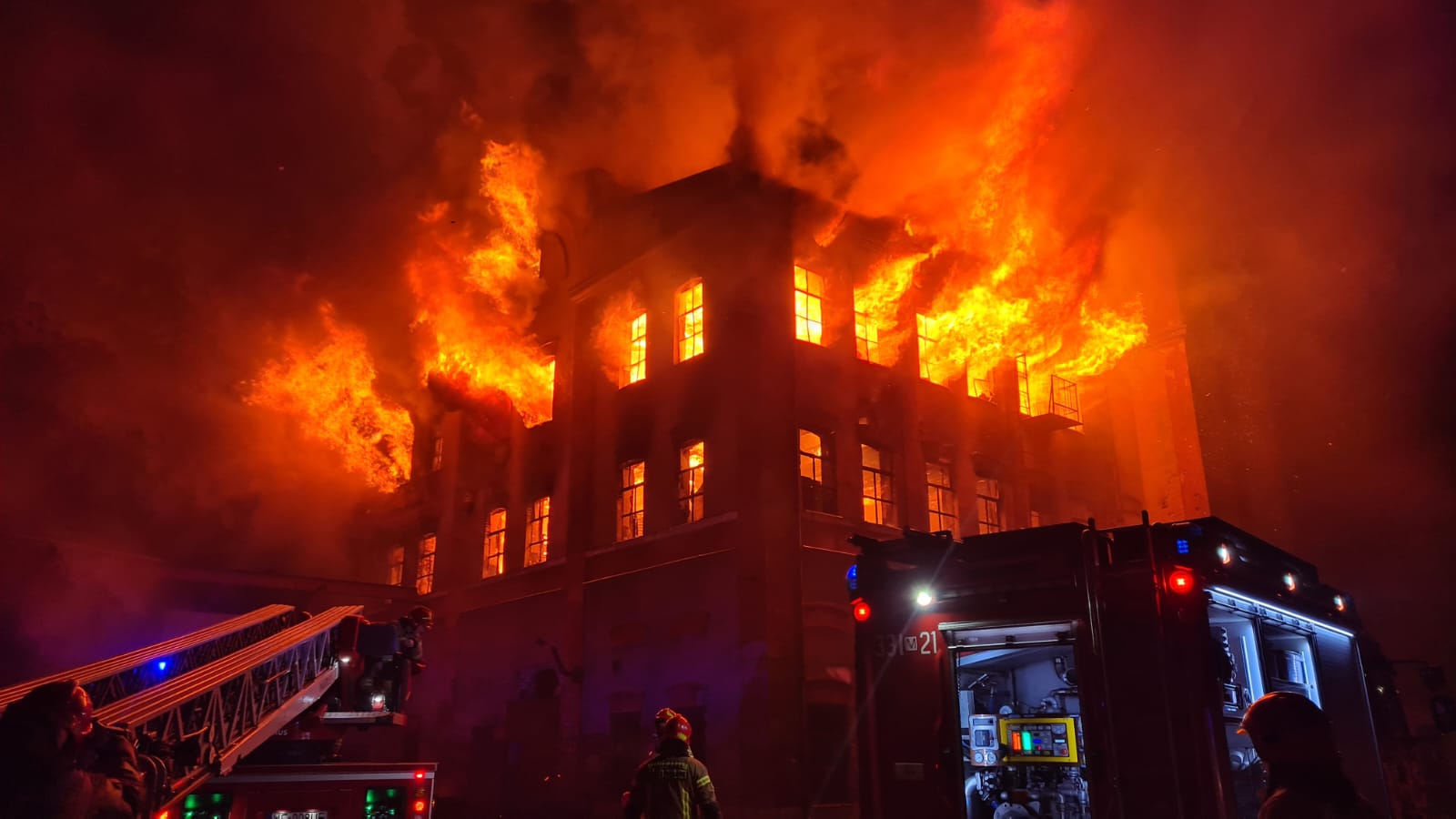 Po dojeździe na miejsce zdarzenia jednostki ochrony przeciwpożarowej zastały rozwinięty pożar całej pierwszej kondygnacji budynku. Działania polegały na podaniu prądów gaśniczych na palący się budynek. Ze względu na znaczny rozwój pożaru przed przybyciem straży pożarnej, a także dużą ilość materiałów palnych znajdujących się w budynku, ogień rozprzestrzenił się na wyższe kondygnacje.