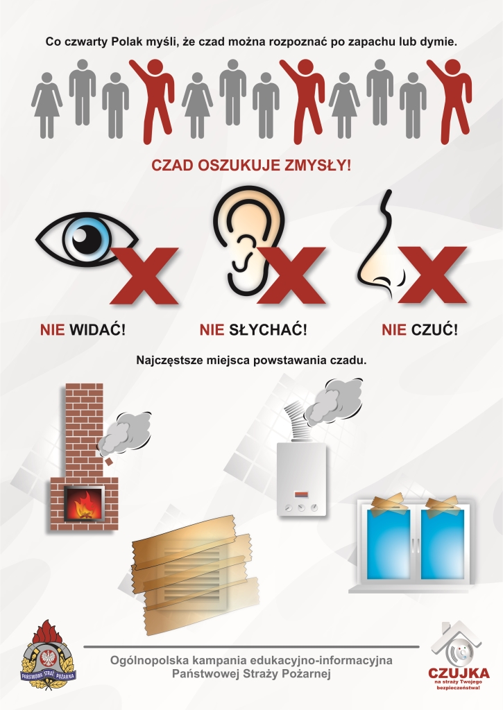 W okresie jesienno-zimowym, w naszym kraju w mieszkaniach i domach wzrasta ryzyko powstania pożarów. Najczęściej dochodzi do nich w wyniku wad, albo niewłaściwej eksploatacji urządzeń grzewczych, elektrycznych i gazowych. W tym samym okresie odnotowywany jest także wzrost liczby zatruć tlenkiem węgla, zwanym "cichym zabójcą", gdyż jest niewidoczny oraz nie ma smaku, ani zapachu.