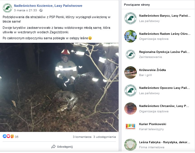 Informację o powyższym wydarzeniu na swoim profilu na Facebooku zamieściły również Lasy Państwowe.