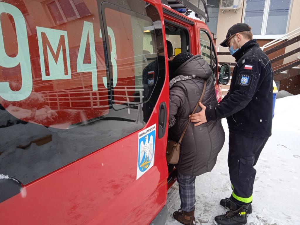 W ramach ogólnopolskiej akcji szczepień przeciw COVID-19 w dniu 09.02.2021 r. druhowie z Ochotniczej Straży Pożarnej w Jastrzębi pomagali w transporcie osoby skierowanej na szczepienie. Transport osoby odbywał się z miejsca zamieszkania – miejscowości Lesiów do wyznaczonego punktu szczepień zlokalizowanego w Poradni Ochrony Zdrowia w Jastrzębi. Pomocy udzielono jednej osobie w podeszłym wieku.