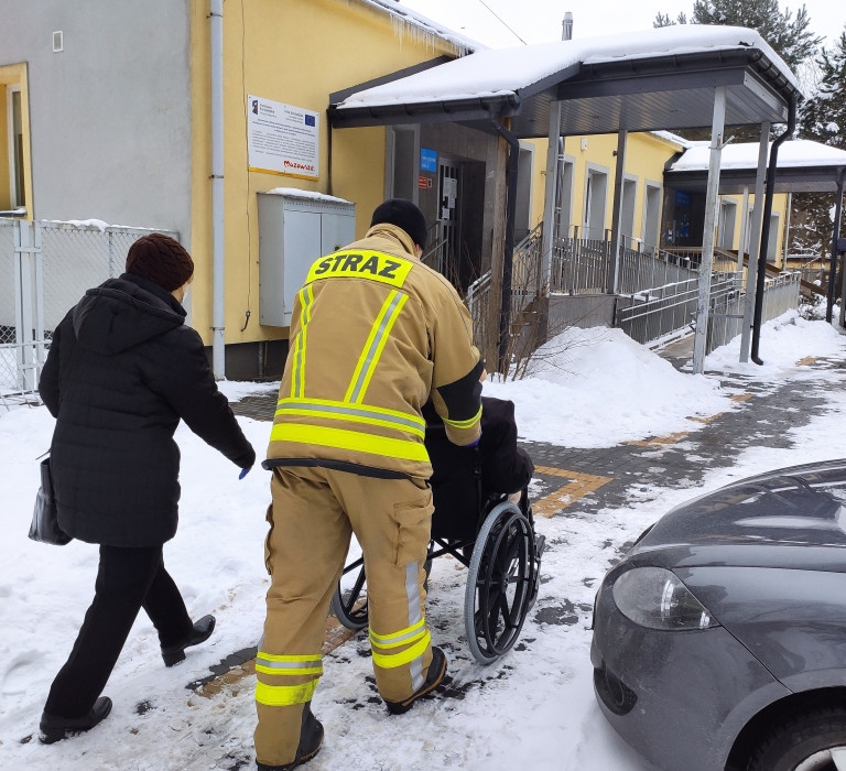 Strażacy pomagają seniorom w akcji szczepienia przeciwko Covid-19