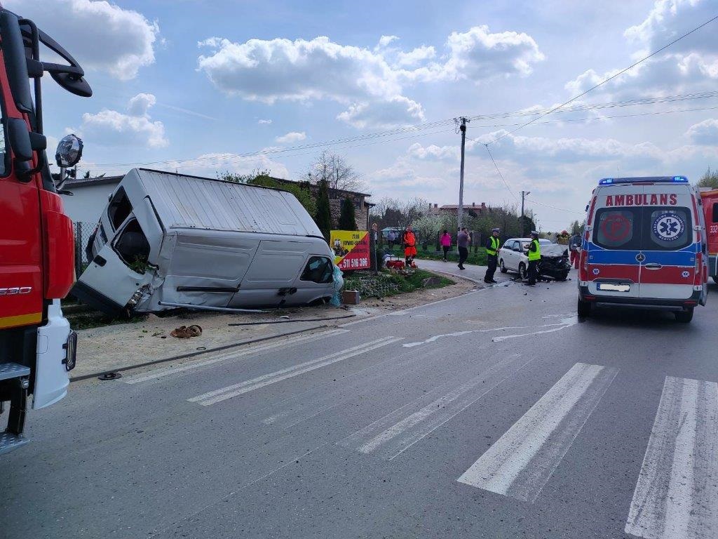 Po dojeździe na miejsce zdarzenia strażacy zastali wypadek samochodu osobowego, znajdującego się na środku skrzyżowania, a także busa leżącego na boku w przydrożnym rowie. Samochodem osobowym podróżowały 4 osoby w tym dwójka dzieci. Pojazdem typu bus natomiast kolejne 3 osoby w tym jedno dziecko. Wszyscy uczestnicy w chwili przybycia zastępów ratowniczych znajdowali się poza pojazdami. Pierwszej pomocy przed medycznej udzielono 3 osobom.