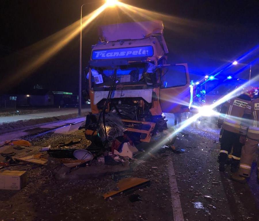 Wypadek samochodów ciężarowych w miejscowości Wsola, ulica Warszawska