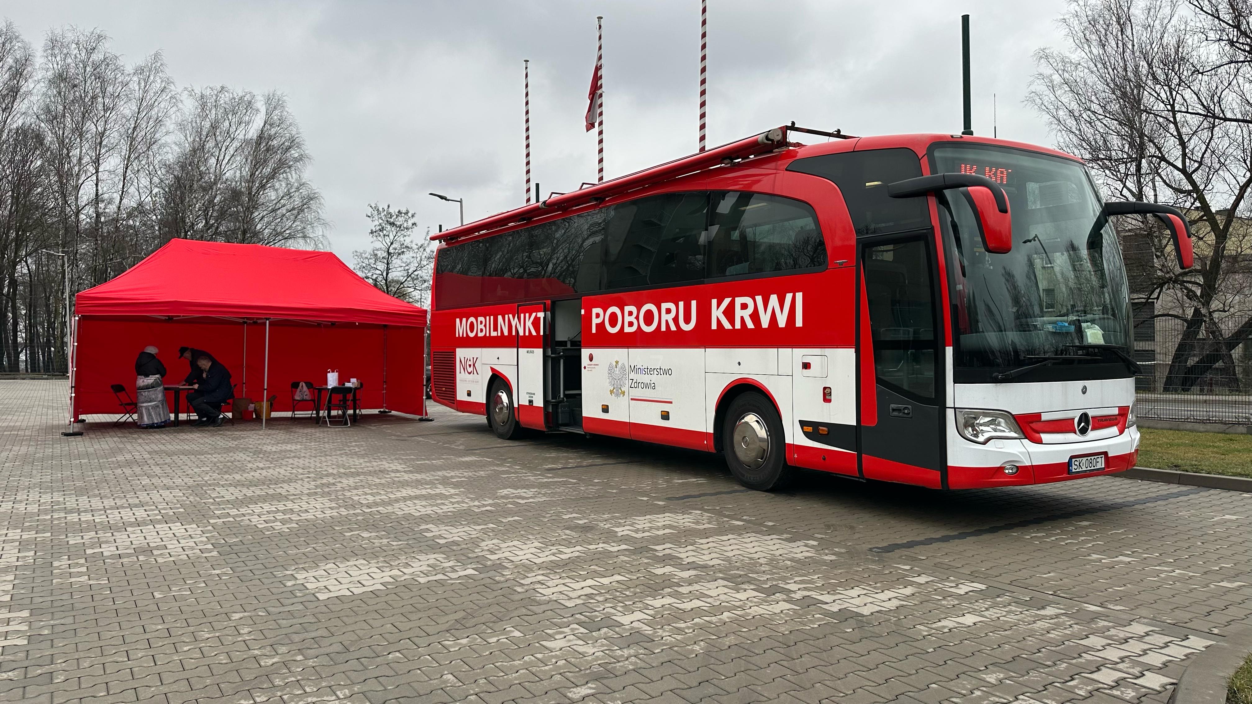 Akcja oddawania krwi na placu przed KM PSP w Rudzie Śląskiej