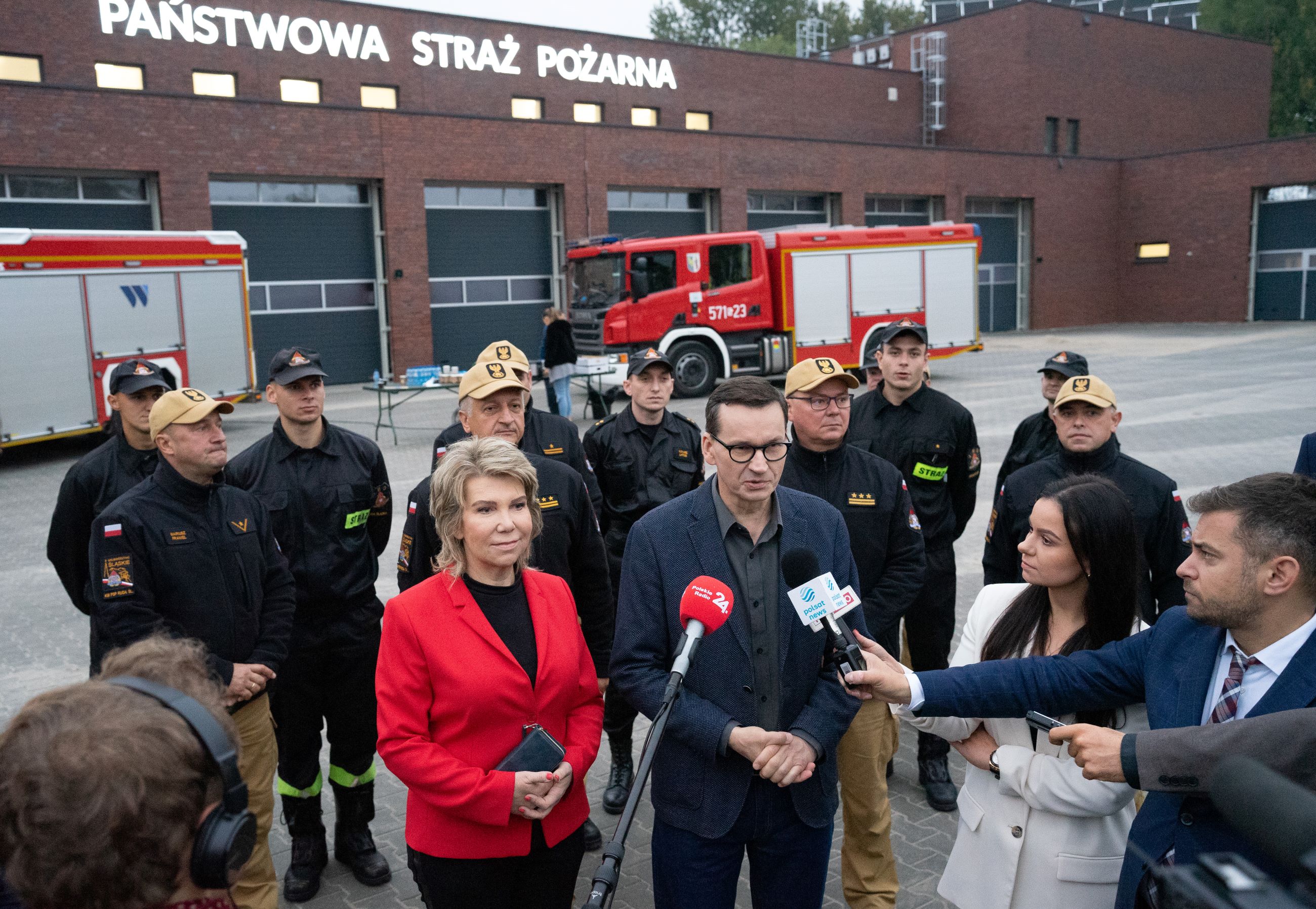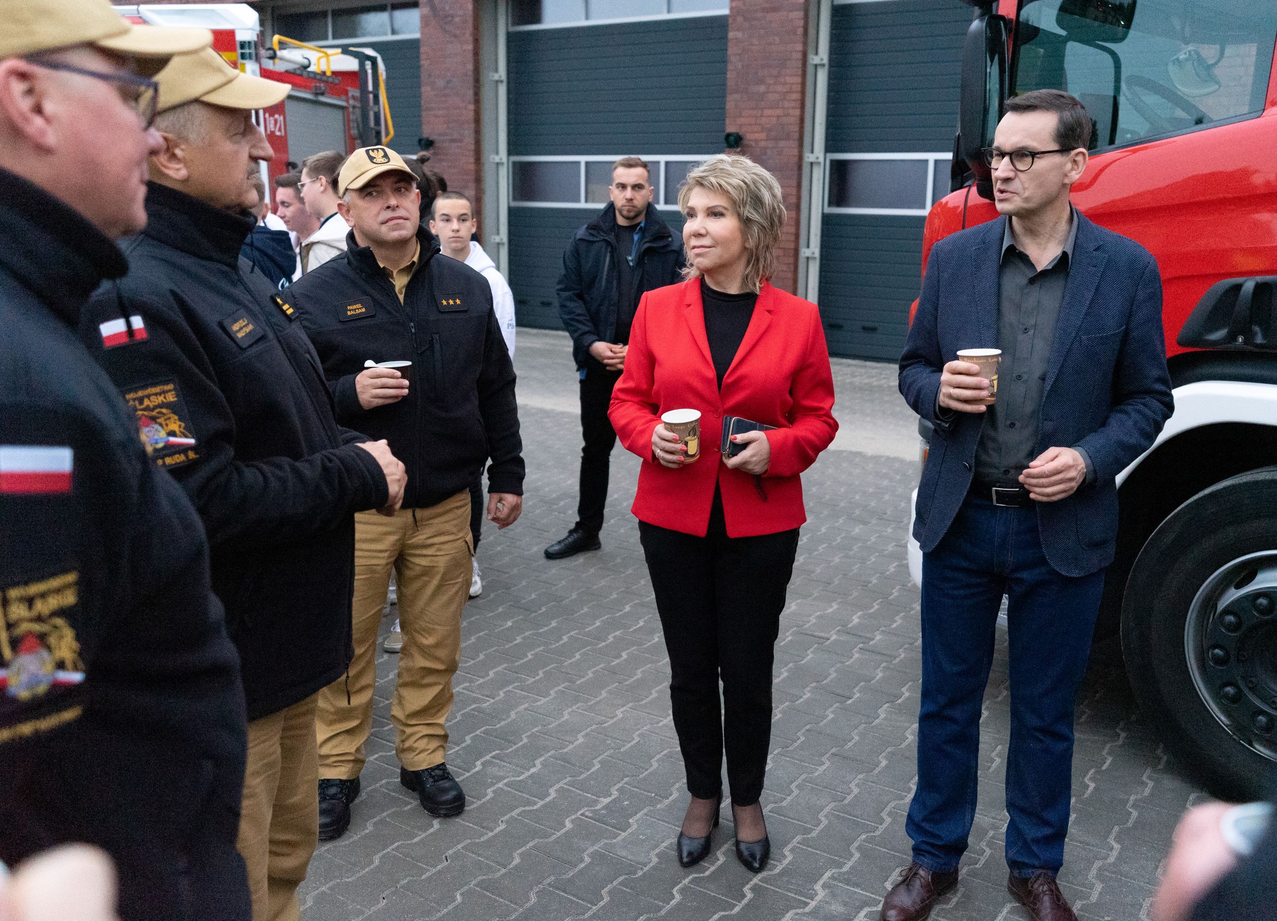 W dniu 13 października 2023 roku na terenie nowo budowanej strażnicy Komendy Miejskiej Państwowej Straży Pożarnej w Rudzie Śląskiej odbyło się spotkanie Prezesa Rady Ministrów Pana Mateusza Morawieckiego z funkcjonariuszami Państwowej Straży Pożarnej. Planowany termin oddania obiektu do użytkowania przewidziany jest na grudzień br. Podczas spotkania odbył się krótki briefing prasowy dla obecnych na miejscu mediów.
