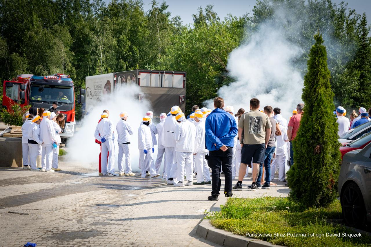 Ćwiczenia rozpoczęły się od przeprowadzenia próbnej ewakuacji całego zakładu, w której udział wzięło ponad 300 pracowników. Po zakończeniu ewakuacji odbył się pokaz praktycznego użycia gaśnic, podczas którego zaprezentowano sposoby reagowania w sytuacji zagrożenia pożarem.
