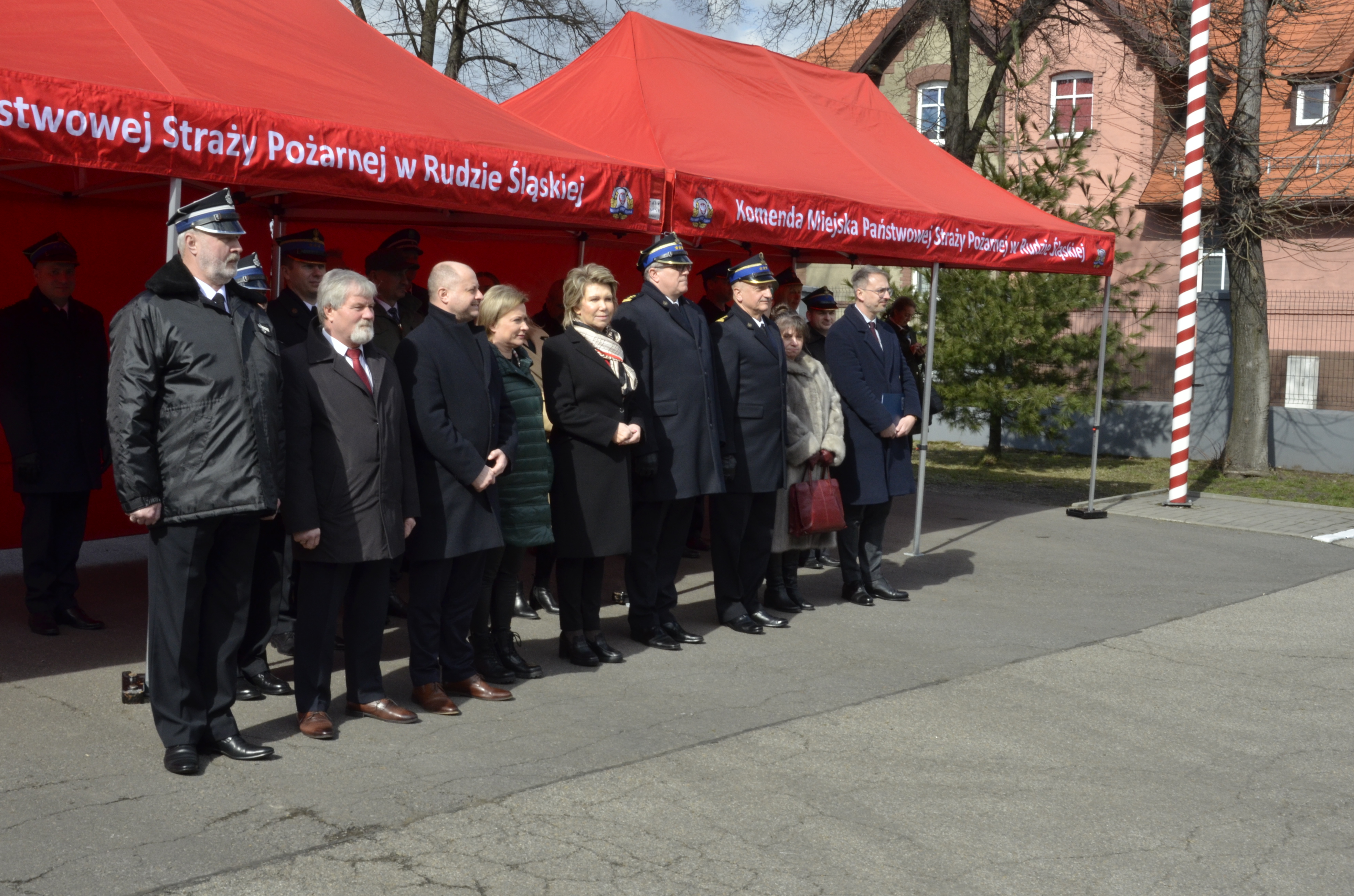Po naradzie na placu zewnętrznym jednostki nastąpiło uroczyste przekazanie nowo zakupionych pojazdów pożarniczych oraz prezentacja pozyskanego w ubiegłym roku sprzętu ratowniczego dla OSP w Rudzie Śląskiej.