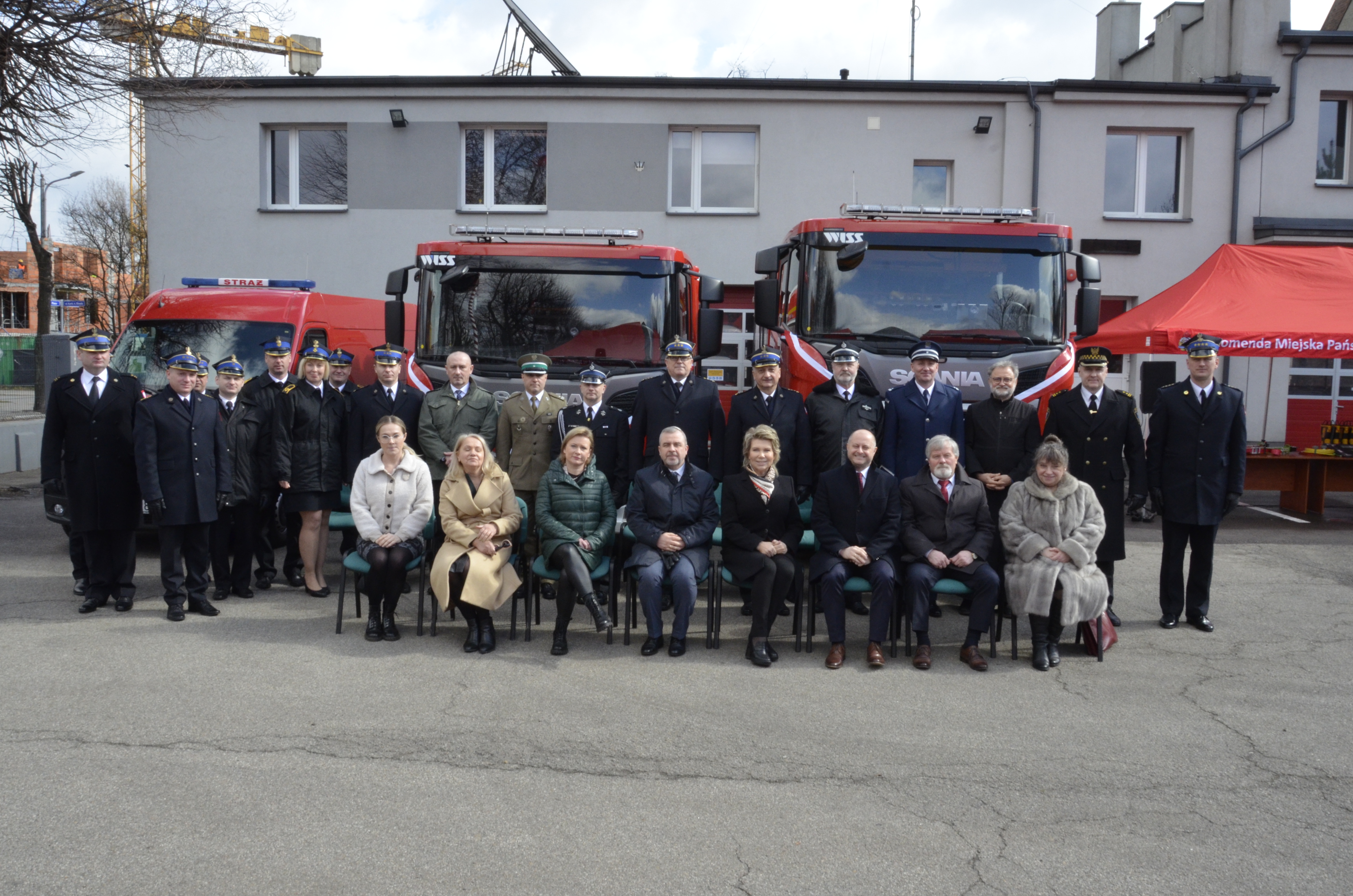 W uroczystości przekazania samochodów pożarniczych oraz prezentacji sprzętu ratowniczego wzięli udział między innymi: