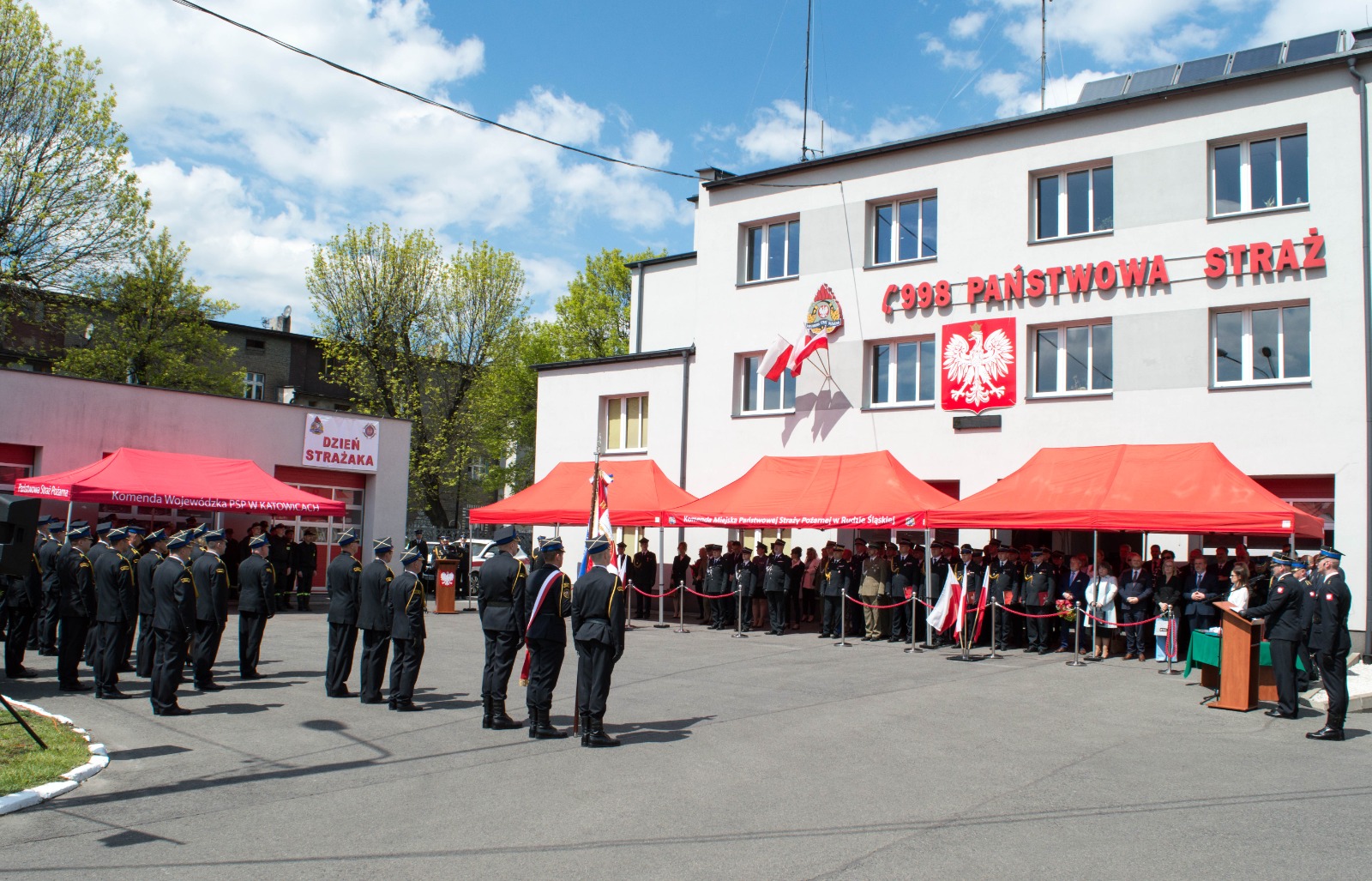 10 maja 2023 roku przed siedzibą Komendy Miejskiej Państwowej Straży Pożarnej w Rudzie Śląskiej odbyły się uroczyste Obchody Dnia Strażaka.