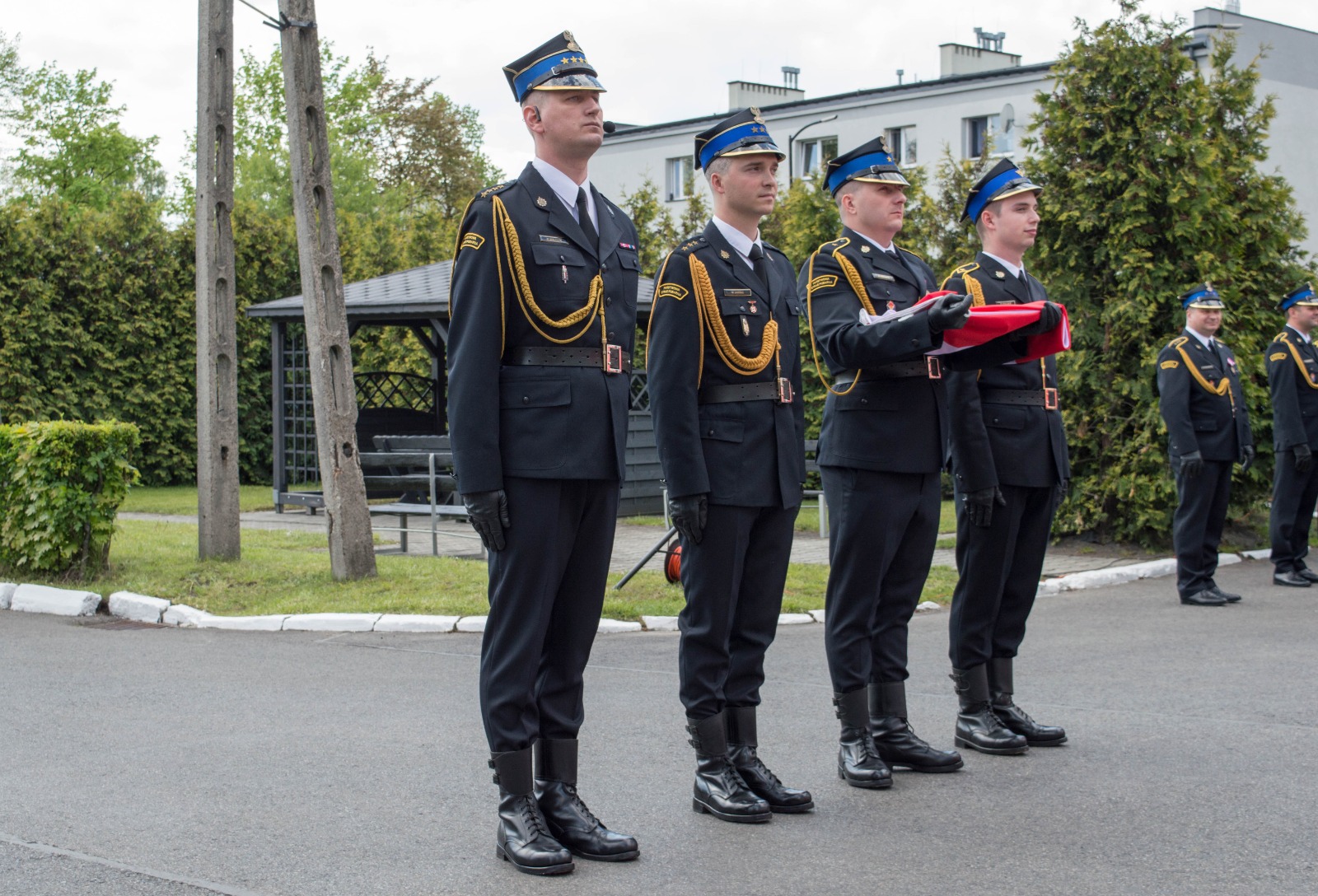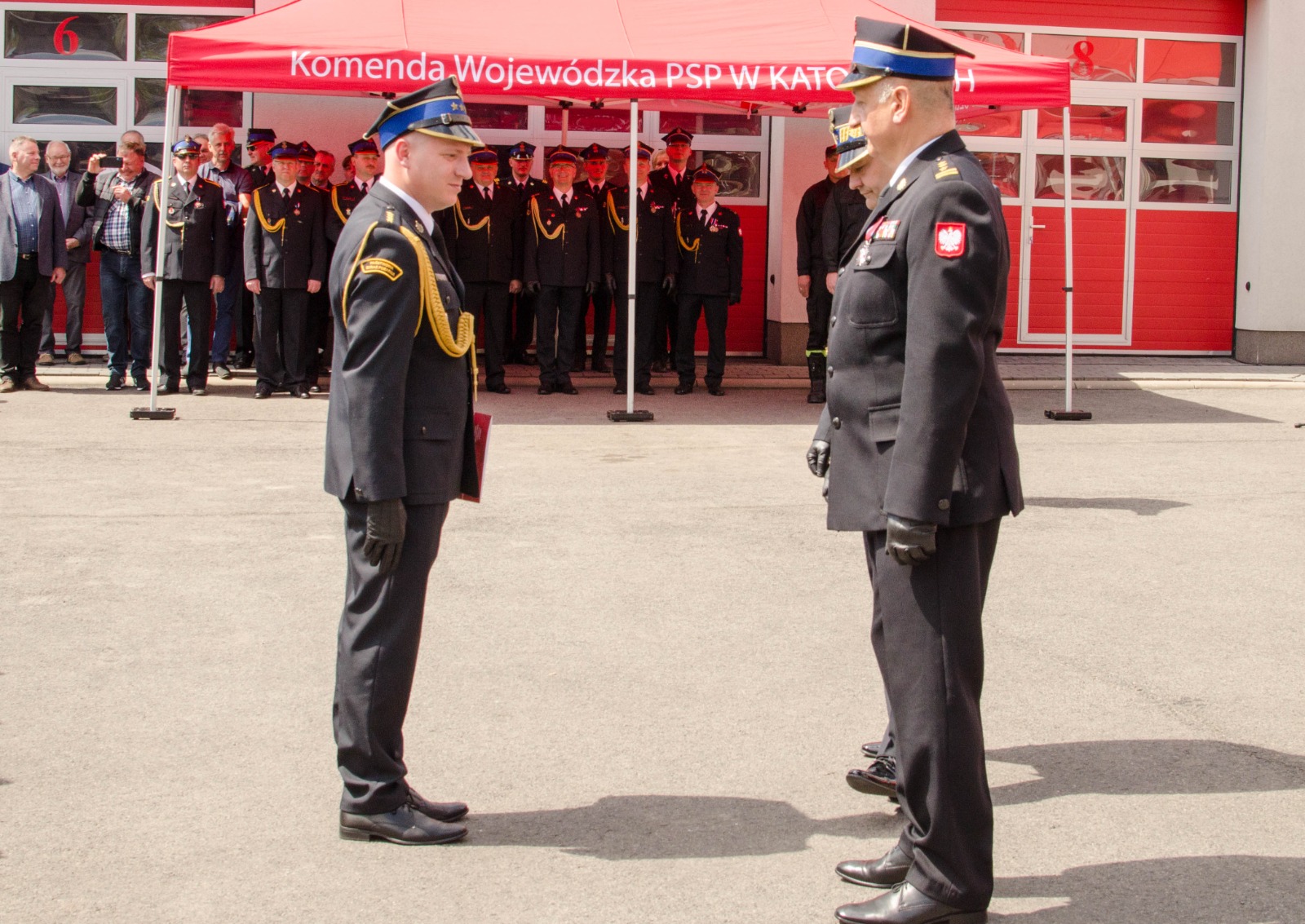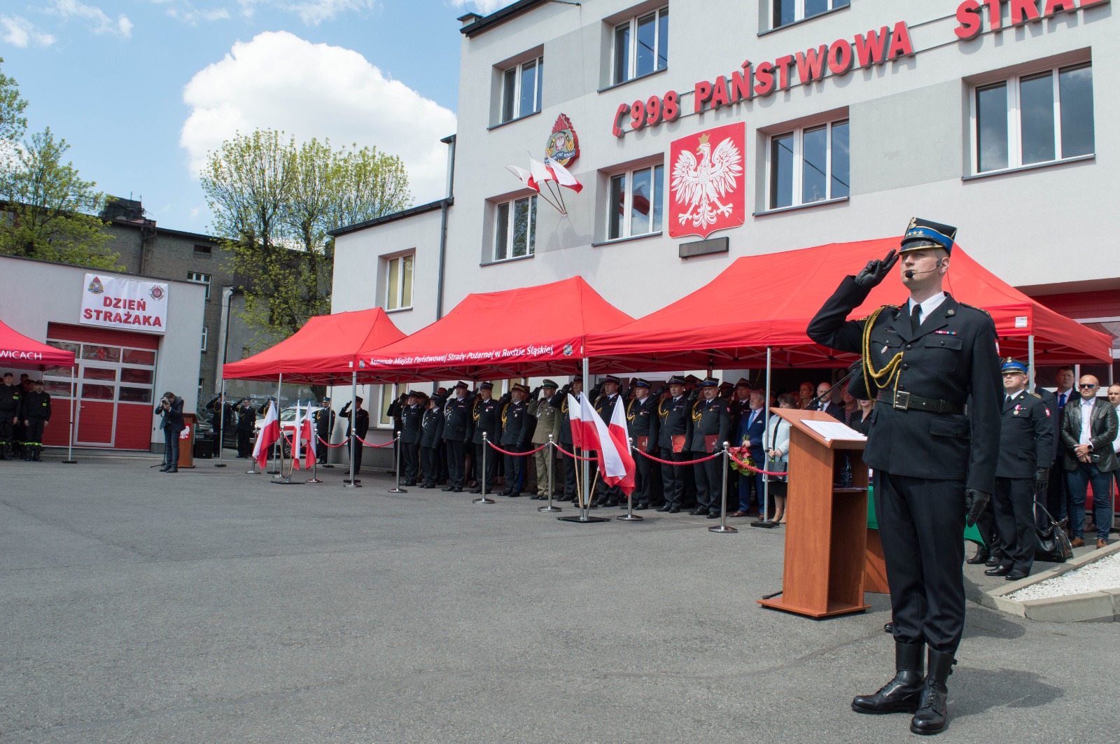 Uroczystość rozpoczęła się złożeniem meldunku przez dowódcę uroczystości st. kpt. Macieja Małczaka Śląskiemu Komendantowi Wojewódzkiemu Państwowej Straży Pożarnej, nadbryg. Jackowi Kleszczewskiemu. Po odegraniu hymnu państwowego minutą ciszy uczczono pamięć strażaków zmarłych w ostatnim czasie.