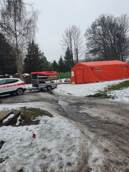Strażacy natychmiast przystąpili do działań gaśniczych, udzielenia kwalifikowanej pierwszej pomocy znajdującym się na zewnątrz poszkodowanym oraz ewakuacji pozostałych w budynku osób. Pomimo groźnej sytuacji, pożar szybko został opanowany, a osoby poszkodowane przekazane przybyłemu na miejsce zdarzenia Zespołowi Ratownictwa Medycznego. Z uwagi na warunki atmosferyczne na miejsce zadysponowano namiot pneumatyczny, w którym ewakuowani mieszkańcy budynku mogli znaleźć schronienie.