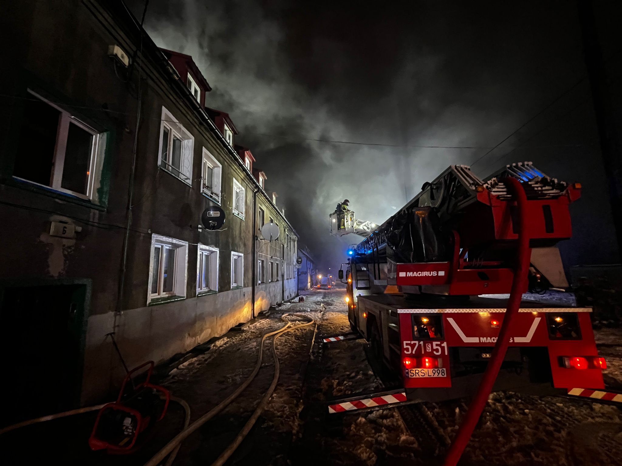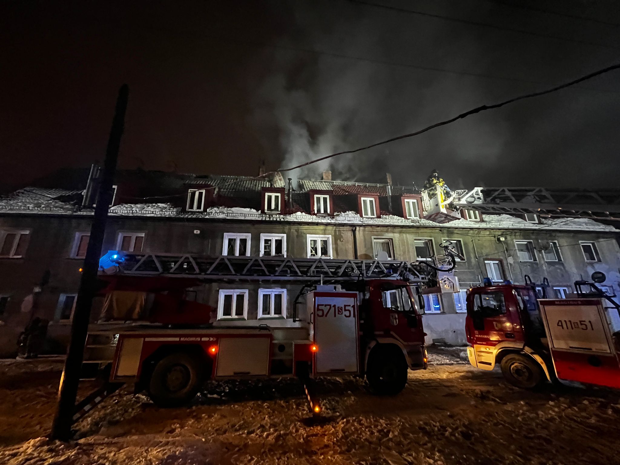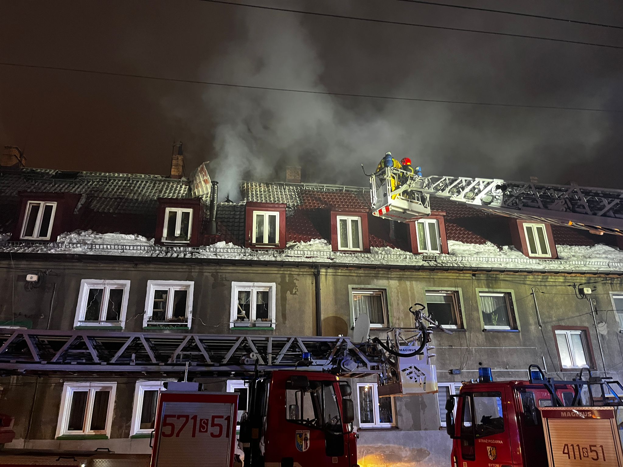 Po przybyciu na miejsce zdarzenia strażacy zabezpieczyli teren i przystąpili do rozpoznania sytuacji. Ustalono, że pożar wybuchł na nieużytkowym poddaszu budynku wielorodzinnego. Jeszcze przed przybyciem służb ratowniczych, 15 lokatorów samodzielnie opuściło mieszkania. Dodatkowo strażacy przeprowadzili ewakuację 10 osób.