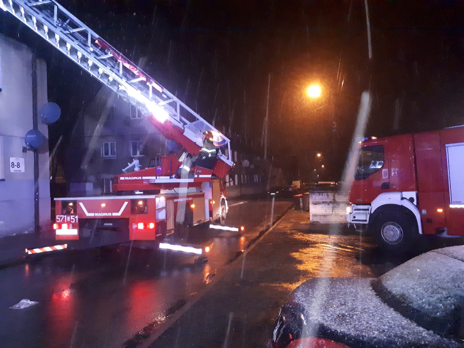 W chwili przybycia na miejsce zdarzenia strażacy stwierdzili silne zadymienie oraz wydobywający się ogień z dachu trzykondygnacyjnego budynku mieszkalnego. Natychmiast przystąpiono do gaszenia pożaru. Podczas prowadzonych działań z budynku ewakuowano 3 osoby, pozostali lokatorzy opuścili swoje mieszkania przed przyjazdem strażaków. Na miejscu zdarzenia rozstawiony został namiot pneumatyczny, w którym mieszkańcy budynku mogli znaleźć schronienie.