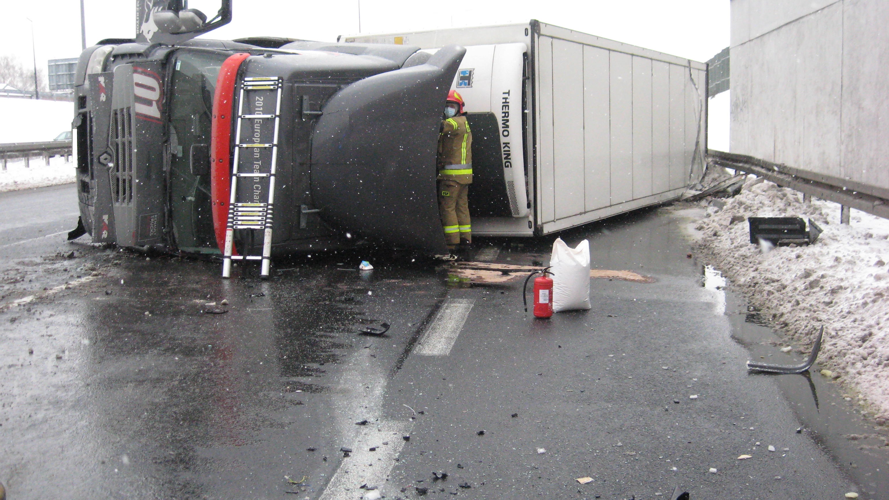 Przewrócony tir na DTŚ w Rudzie Śląskiej