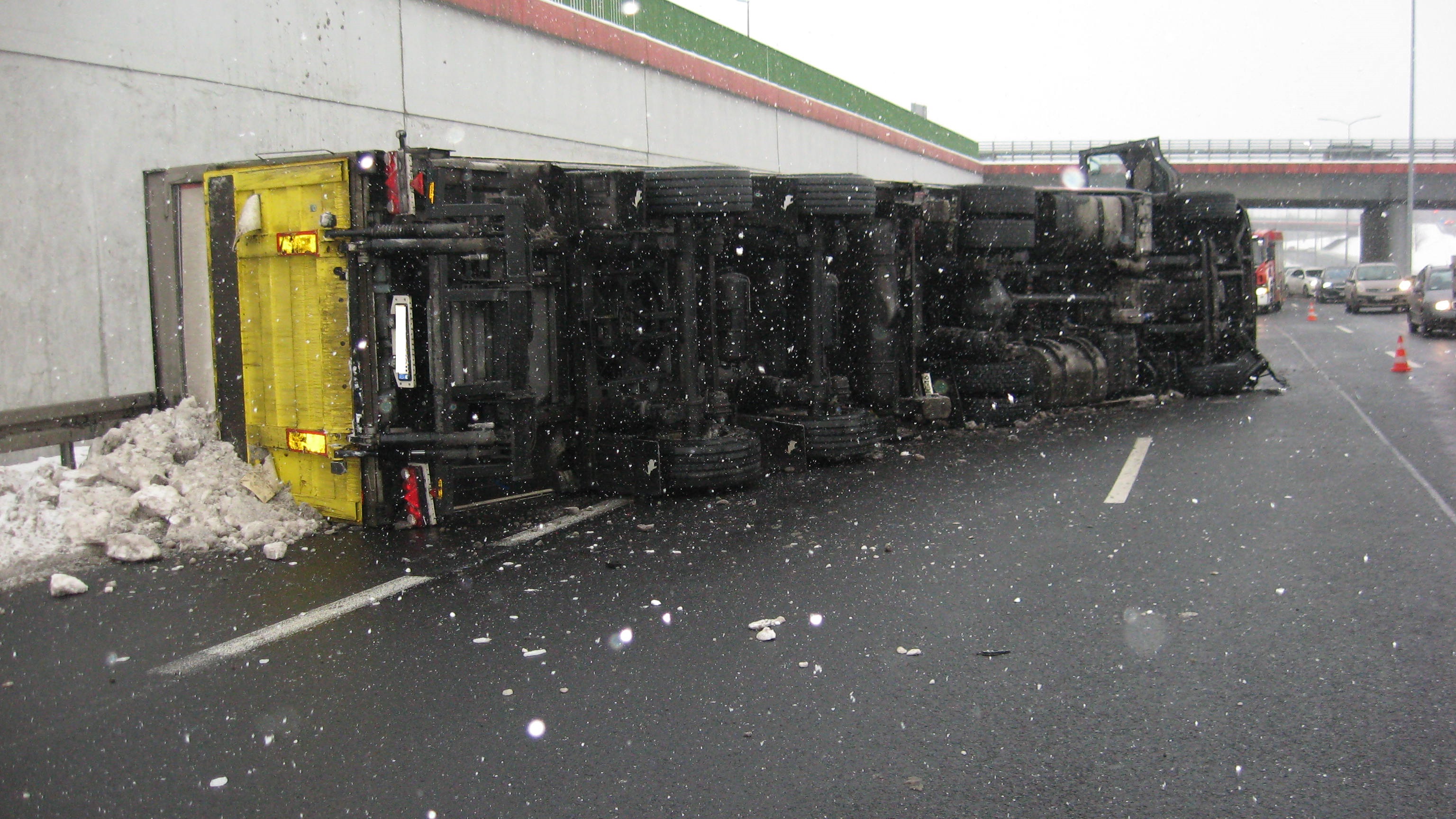 12 lutego 2021 r. przed godziną 14 doszło do przewrócenia się ciągnika siodłowego z naczepą na Drogowej Trasie Średnicowej w kierunku Gliwic. Działania strażaków polegały na zabezpieczeniu miejsca zdarzenia, ograniczeniu wycieków płynów eksploatacyjnych oraz oleju napędowego. Po przeładowaniu przewożonego towaru do innej naczepy, przystąpiono do postawienia tira na koła. Dalsze działania polegały na sorbcji i neutralizacji paliwa oraz płynów eksploatacyjnych. W czasie działań DTŚ w kierunku Gliwic była zamknięta przez około 6 godzin, na ten czas Policja zorganizowała objazdy.
