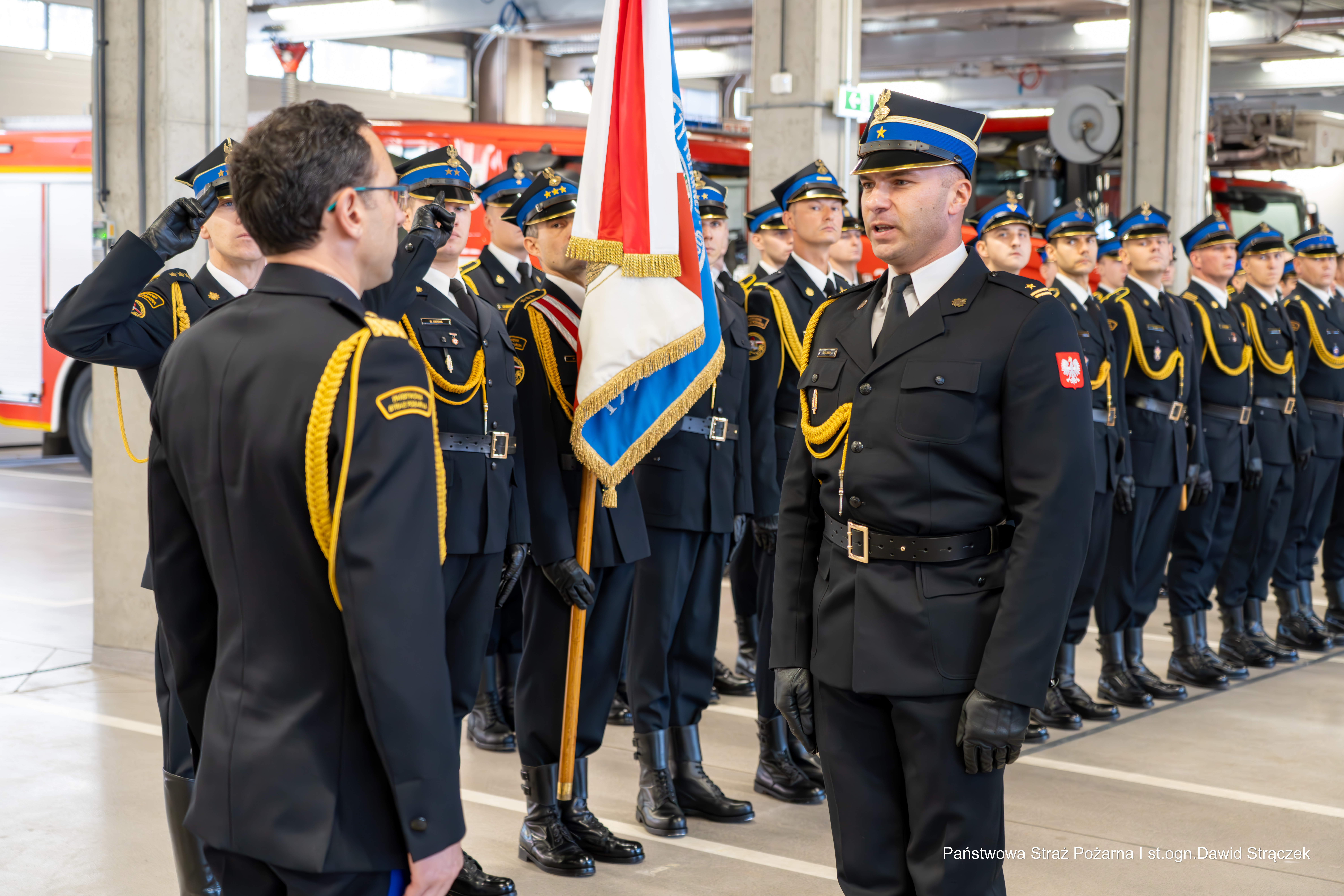 Uroczysta zbiórka rozpoczęła się złożeniem meldunku Śląskiemu Komendantowi Wojewódzkiemu PSP nadbryg. Wojciechowi Kruczkowi przez dowódcę uroczystości mł. bryg. Tobiasza Klamę, wprowadzeniem sztandaru Komendy Wojewódzkiej PSP w Katowicach oraz odegraniem hymnu państwowego.