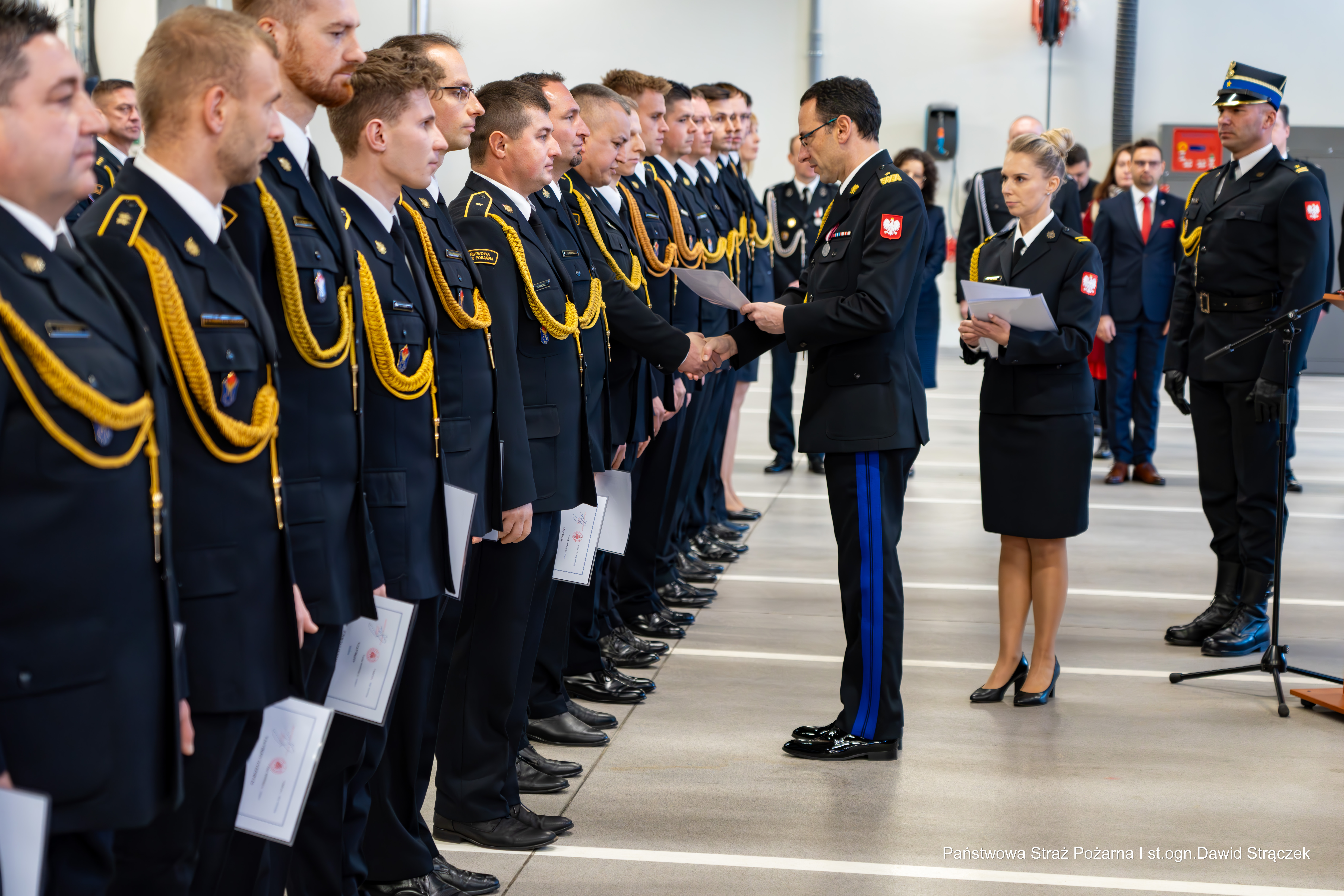 Po ceremonii wręczenia medali i odznaczeń, Śląski Komendant Wojewódzki PSP wręczył 58 funkcjonariuszom akty nadania wyższych stopni służbowych.