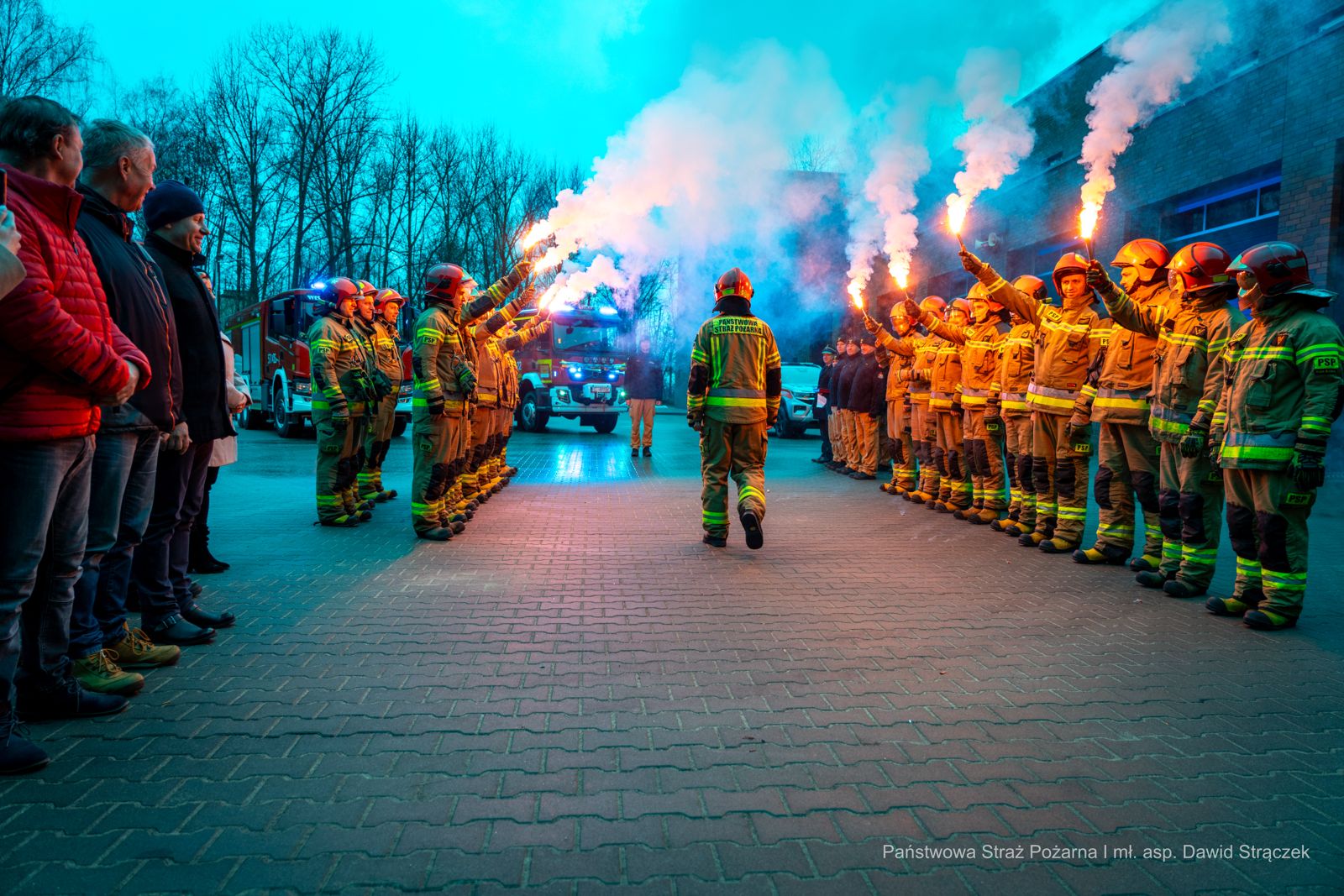 Panie Aspirancie, dziękujemy za każdy dzień gotowości do działania, za opanowanie w trudnych chwilach, doświadczenie oraz koleżeńskie wsparcie, na które zawsze można było liczyć. Pańska służba była nie tylko obowiązkiem, ale przede wszystkim misją realizowaną z sercem i oddaniem. Dziękujemy za wspólnie przeprowadzone akcje, za zaangażowanie w szkolenia oraz wkład w budowanie siły i jedności naszego zespołu.