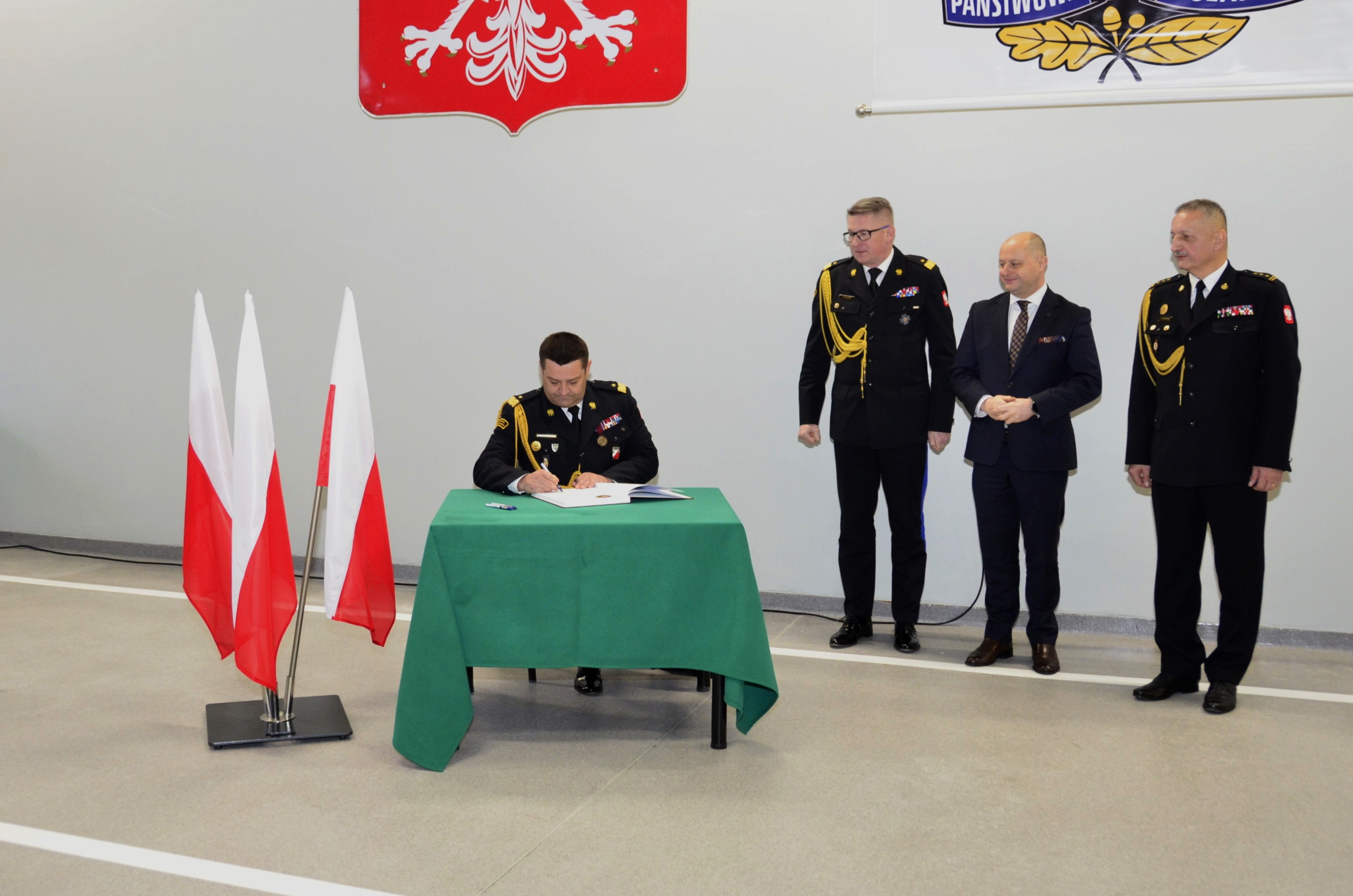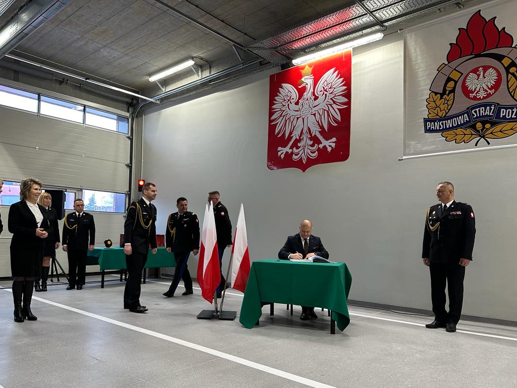 Następnie goście wpisali się do księgi pamiątkowej, a nowy obiekt komendy oraz sprzęt zostały poświęcone przez kapelana strażaków województwa śląskiego ks. Michała Palowskiego.