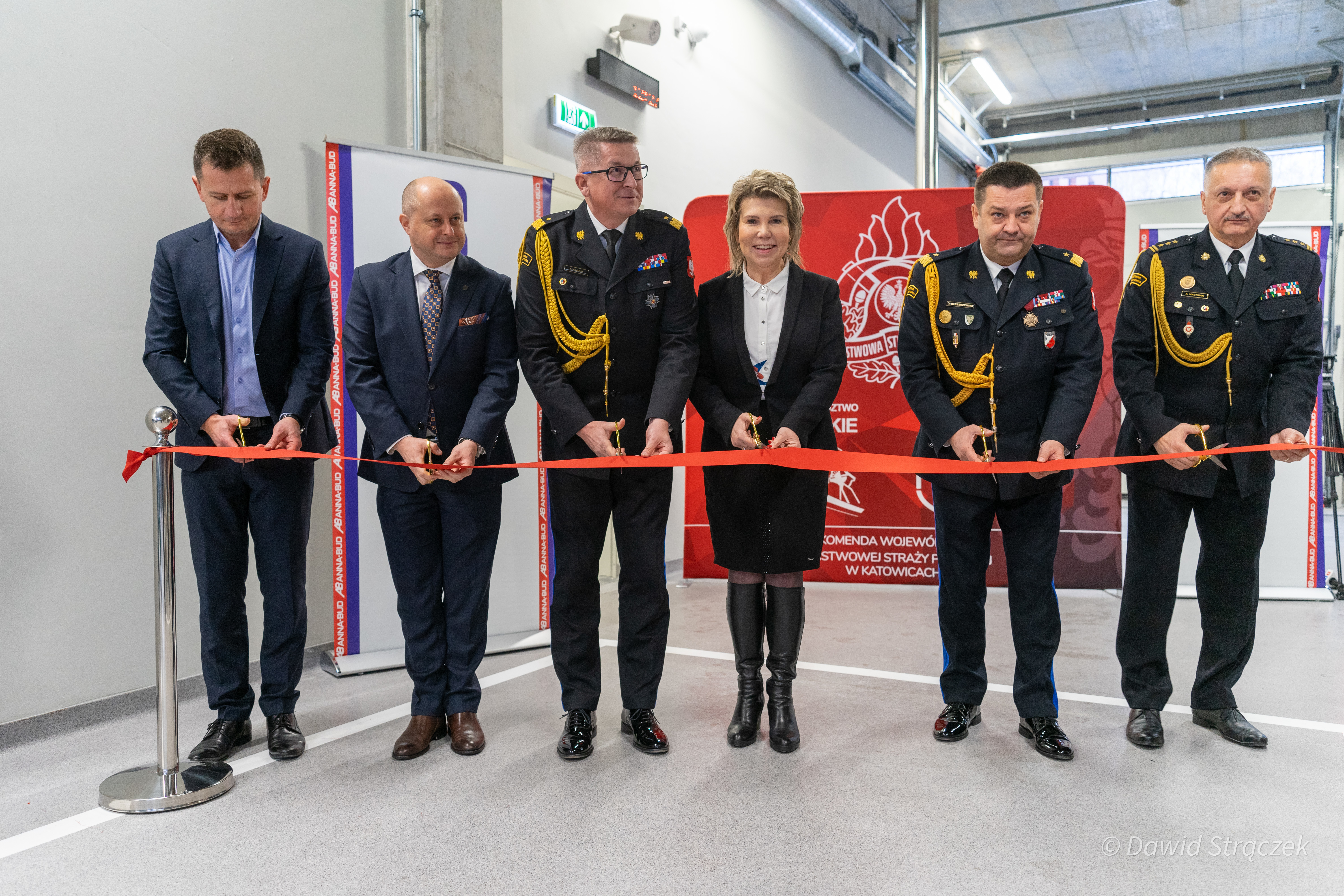 Kulminacyjnym punktem uroczystego Apelu było przecięcie wstęgi, symbolizujące otwarcie nowej strażnicy, którego dokonali: