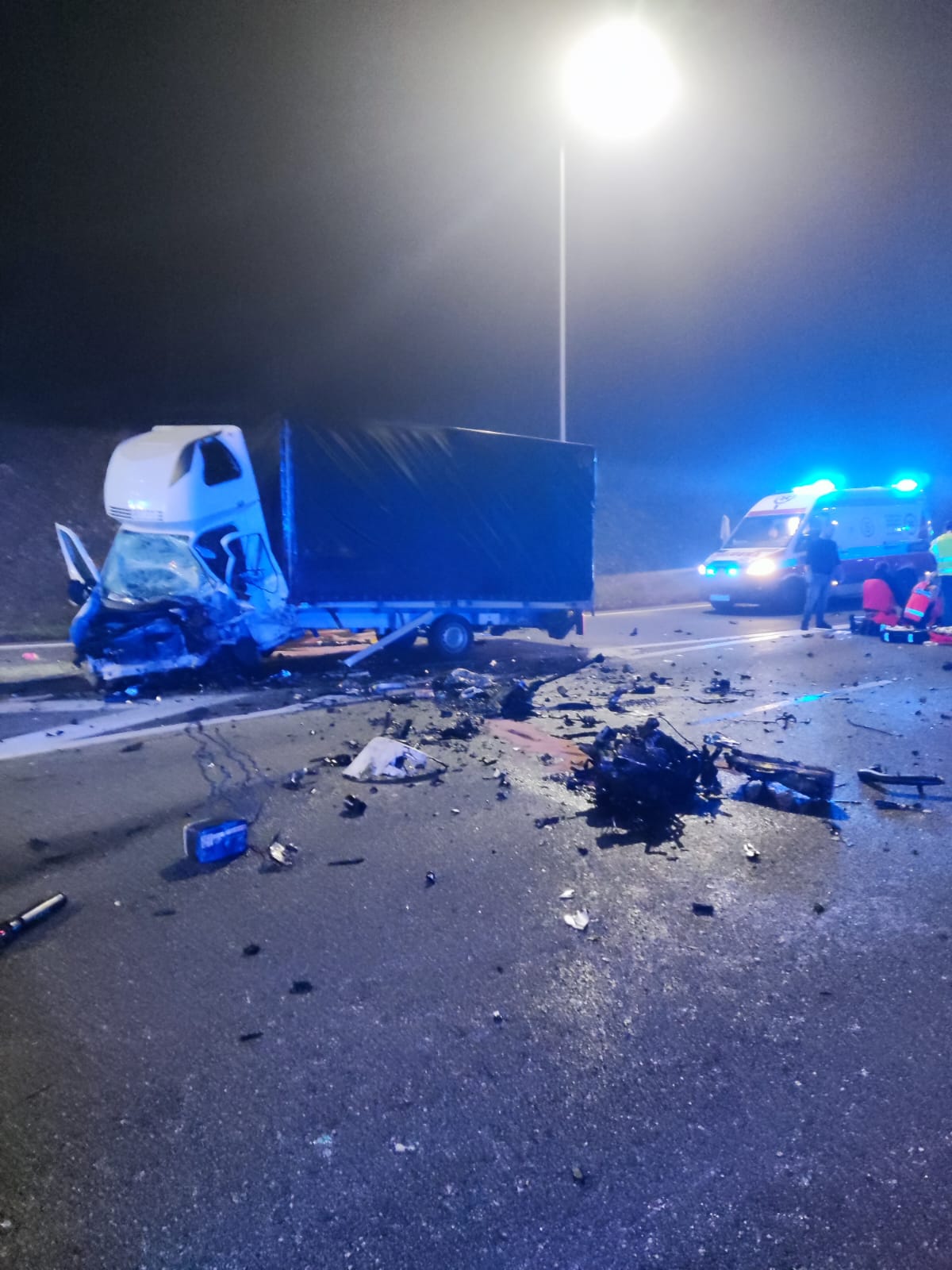 Dzisiaj o godzinie 1:11 Stanowisko Kierowania Komendanta Miejskiego w Rudzie Śląskiej przyjęło zgłoszenie o wypadku samochodu dostawczego z osobówką. Do zdarzenia doszło na Autostradzie A4 w kierunku Katowic na wysokości MOP Wirek. W zdarzeniu w wyniku poniesionych obrażeń jedna osoba zmarła na miejscu, a kolejne dwie zostały zabrane do szpitala celem dalszej hospitalizacji. Do godziny 5:30 Autostrada A4 w kierunku Katowic była nieprzejezdna. W akcji brały udział trzy zastępy PSP w tym 8 strażaków. Działania zakończono o godz. 7:55.