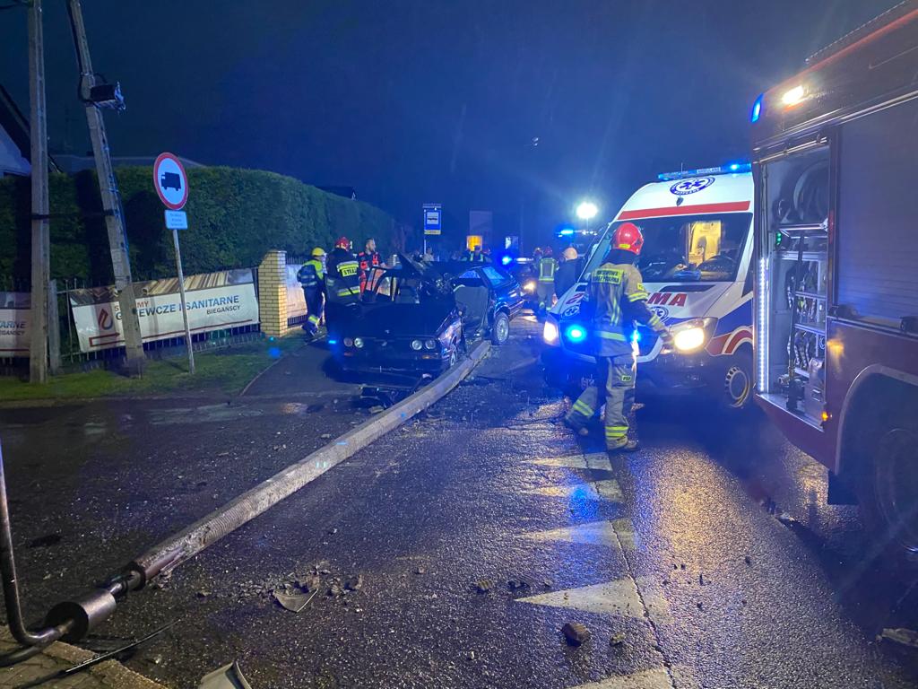 21 maja 2021 r. około godziny 20:30 na ul. 1 Maja doszło do wypadku, w którym samochód osobowy uderzył w słup oświetleniowy w wyniku czego przewrócił się na jezdnie. W pojeździe podróżowało 5 osób. Po przybyciu pierwszych zastępów Państwowej Straży Pożarnej działania polegały na zabezpieczeniu miejsca zdarzenia, udzieleniu kwalifikowanej pierwszej pomocy medycznej osobom, które były poza pojazdem. Natomiast jedną osobę, która była zakleszczona w pojeździe, strażacy musieli uwolnić przy użyciu sprzętu hydraulicznego, następnie przekazali ją będącemu na miejscu Zespołowi Ratownictwa Medycznego. Po przebadaniu przez ZRM wszystkich uczestników wypadku, trzy osoby zostały zabrane do szpitala na dalsze badania. Dalsze działania polegały na sorpcji rozlanych płynów eksploatacyjnych oraz posprzątaniu miejsca zdarzenia. W zdarzeniu brały udział 3 zastępy Państwowej Straży Pożarnej.