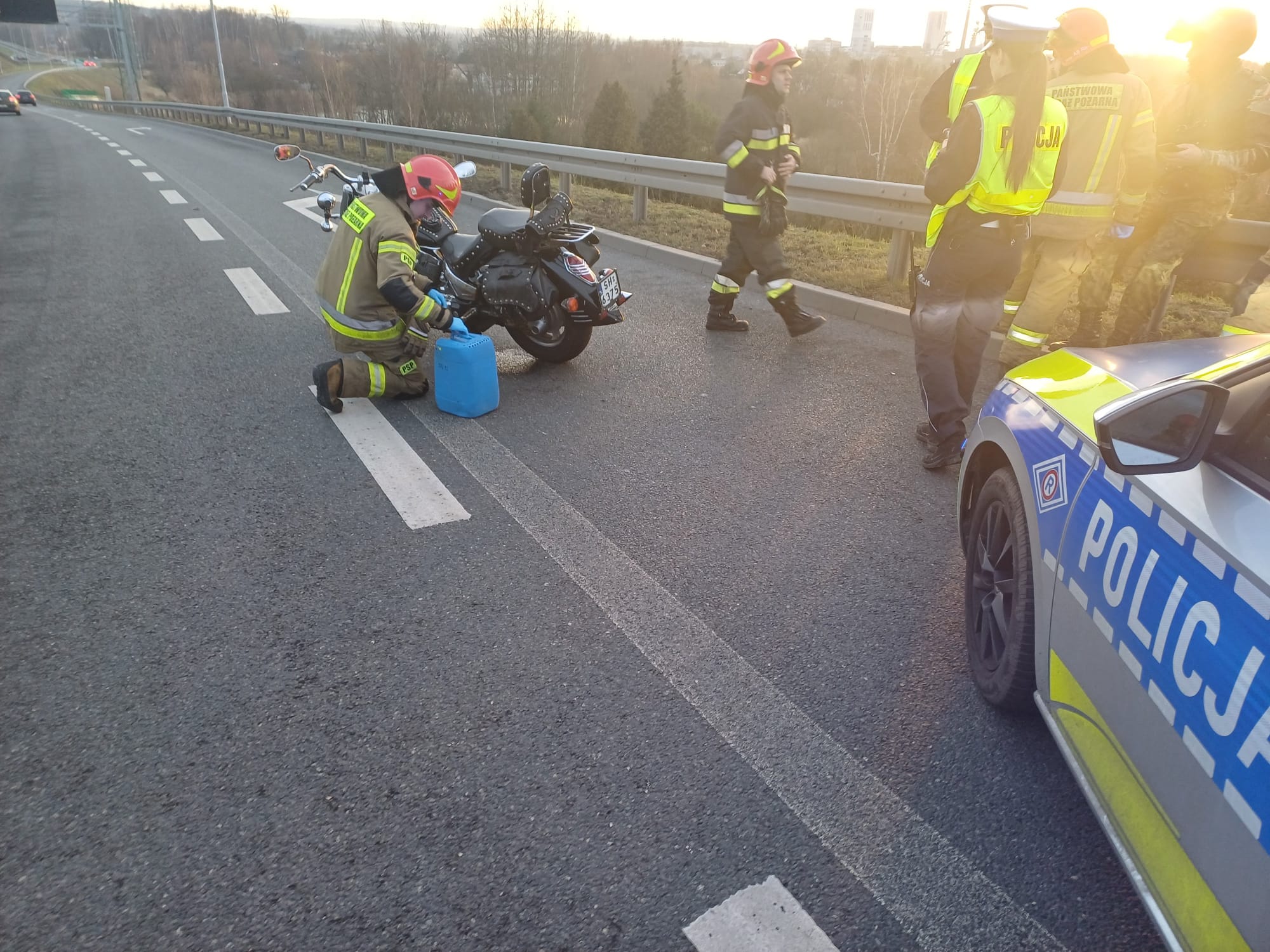 W dniu 18.12.2024 r. około godziny 14:50 Stanowisko Kierowania Komendanta Miejskiego PSP w Rudzie Śląskiej otrzymało zgłoszenie o zderzeniu motocyklisty z sarną. Zdarzenie miało miejsce na trasie N-S w kierunku północnym na wysokości zjazdu w ulicę Kokota. W wyniku zderzenia kierujący motocyklem odniósł lekkie obrażenia, strażacy udzielili mu pierwszej pomocy i przekazali przybyłemu na miejsce Zespołowi Ratownictwa Medycznego w stanie dobrym. Potrącone zwierzę nie przeżyło wypadku i zostało zabrane przez służbę drogową z jezdni. Ponadto strażacy dokonali sorpcji rozlanych płynów eksploatacyjnych z uszkodzonego motocykla oraz uprzątnęli drogę. W akcji brały udział dwa zastępy w tym 8 strażaków, Pogotowie oraz Policja. Akcję zakończono o godzinie 16:50.
