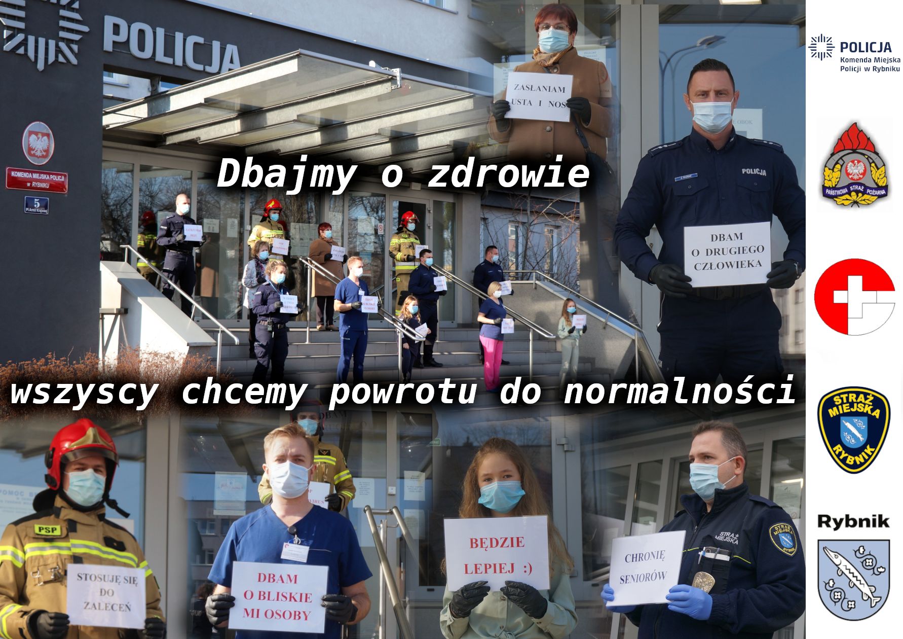 Przedstawiciele Policji, Straży Pożarnej, Straży Miejskiej, Ratownictwa Medycznego oraz rybnickiej Rady Seniora zwrócili się z apelem do mieszkańców Rybnika i powiatu rybnickiego o przestrzeganie obowiązujących obostrzeń i zaleceń w związku z panującą pandemią koronawirusa COVID-19.