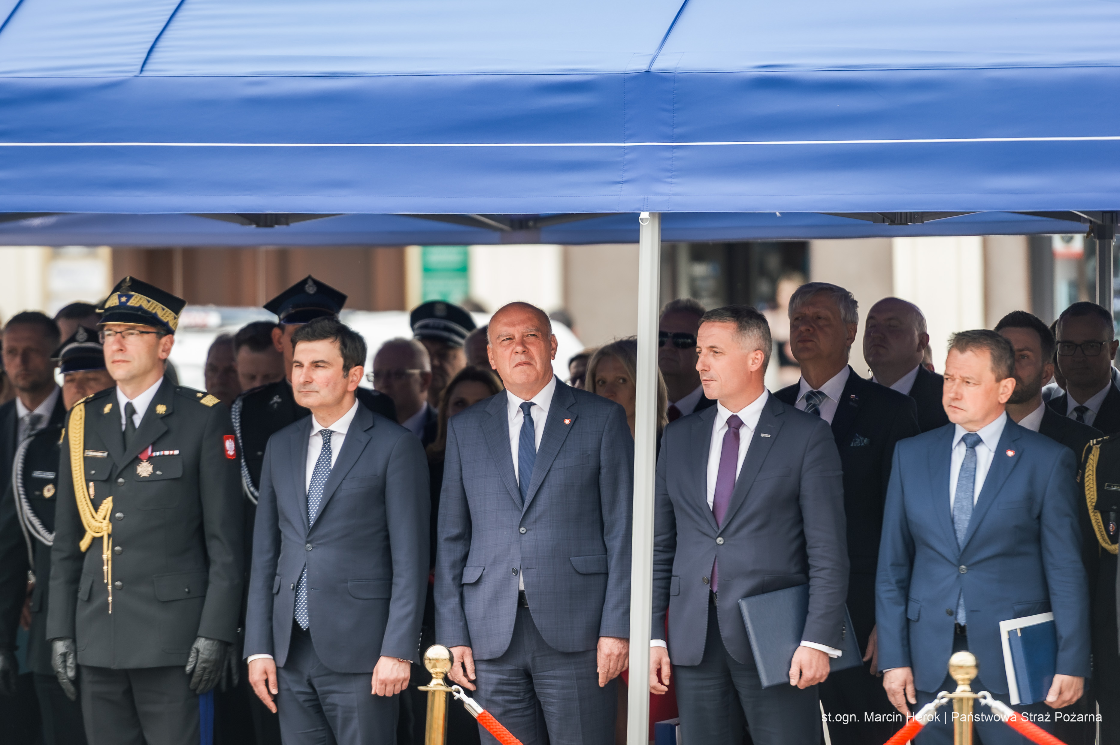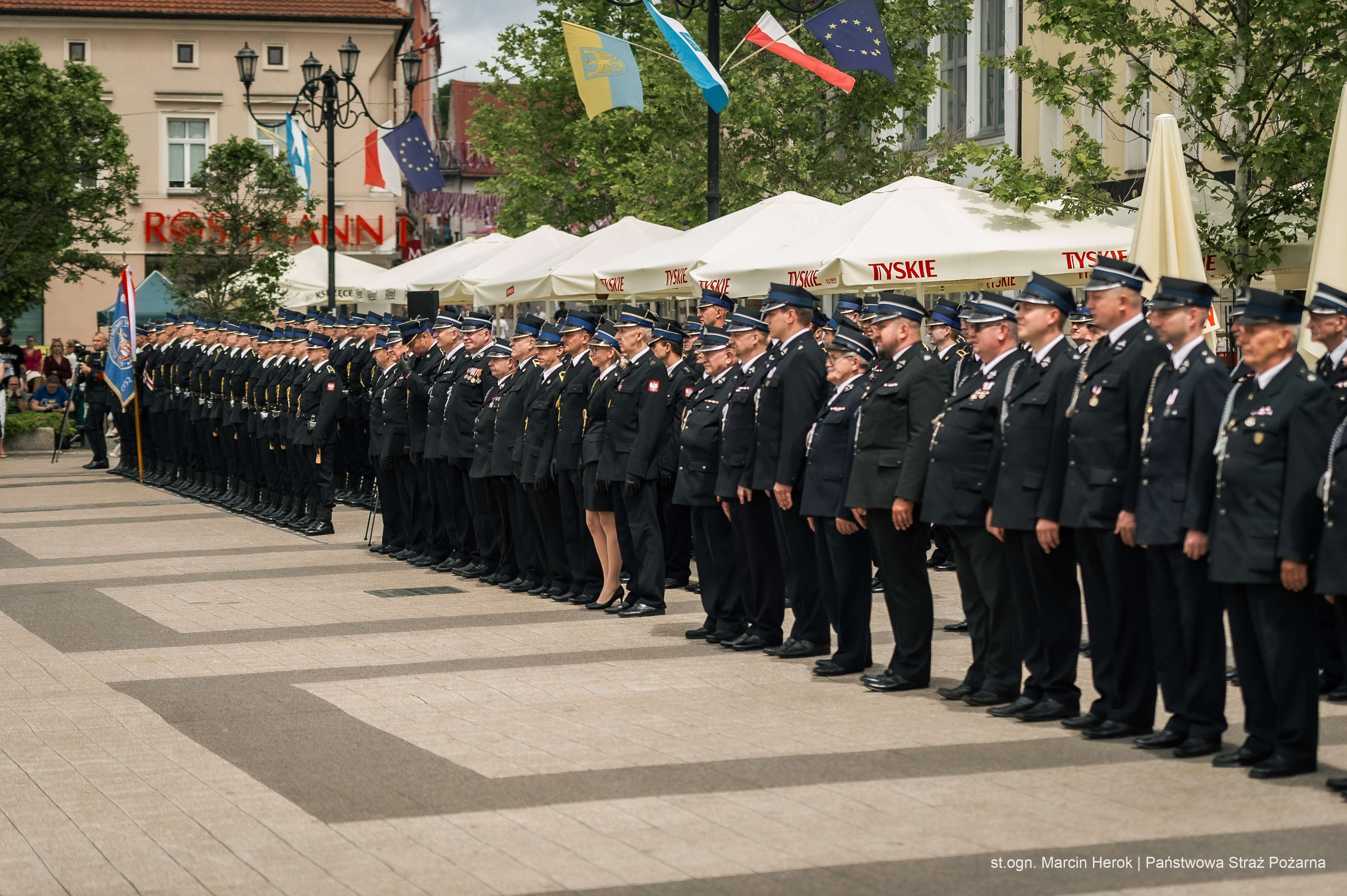 Uroczystość uświetnili: Kompania Reprezentacyjna Komendy Wojewódzkiej PSP w Katowicach pod dowództwem st. kpt. Szymona Kwaśnicy wraz z pocztem sztandarowym Komendy Wojewódzkiej Państwowej Straży Pożarnej w Katowicach oraz Orkiestra Reprezentacyjna Komendy Wojewódzkiej Policji w Katowicach pod batutą asp. Daniela Grodzińskiego.