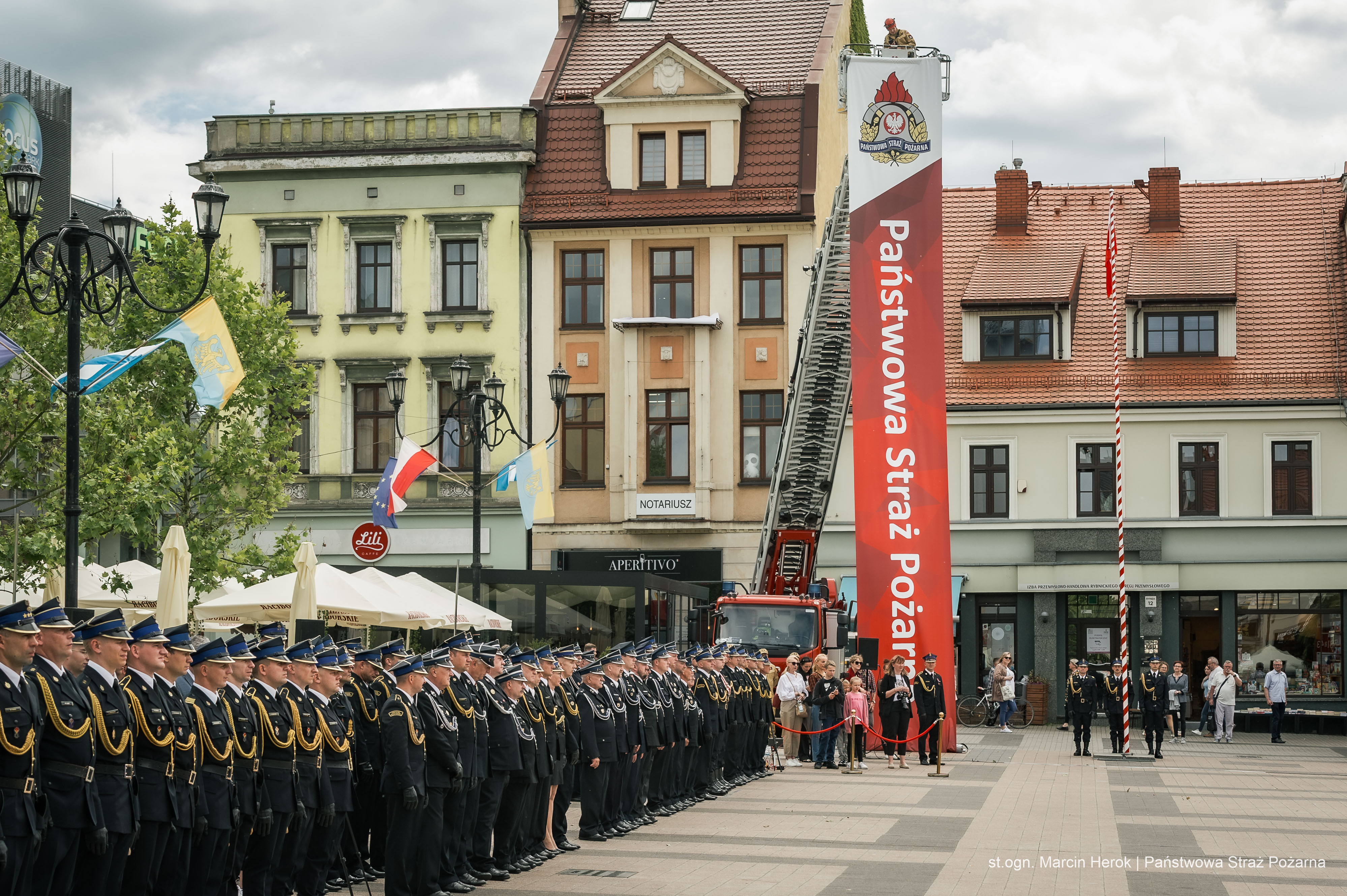 Uroczysty apel rozpoczął się złożeniem meldunku przez dowódcę uroczystości st. kpt. Mateusza Kuśkę, Komendantowi Głównemu PSP nadbryg. Wojciechowi Kruczkowi, który dokonał przeglądu i powitania pododdziałów.