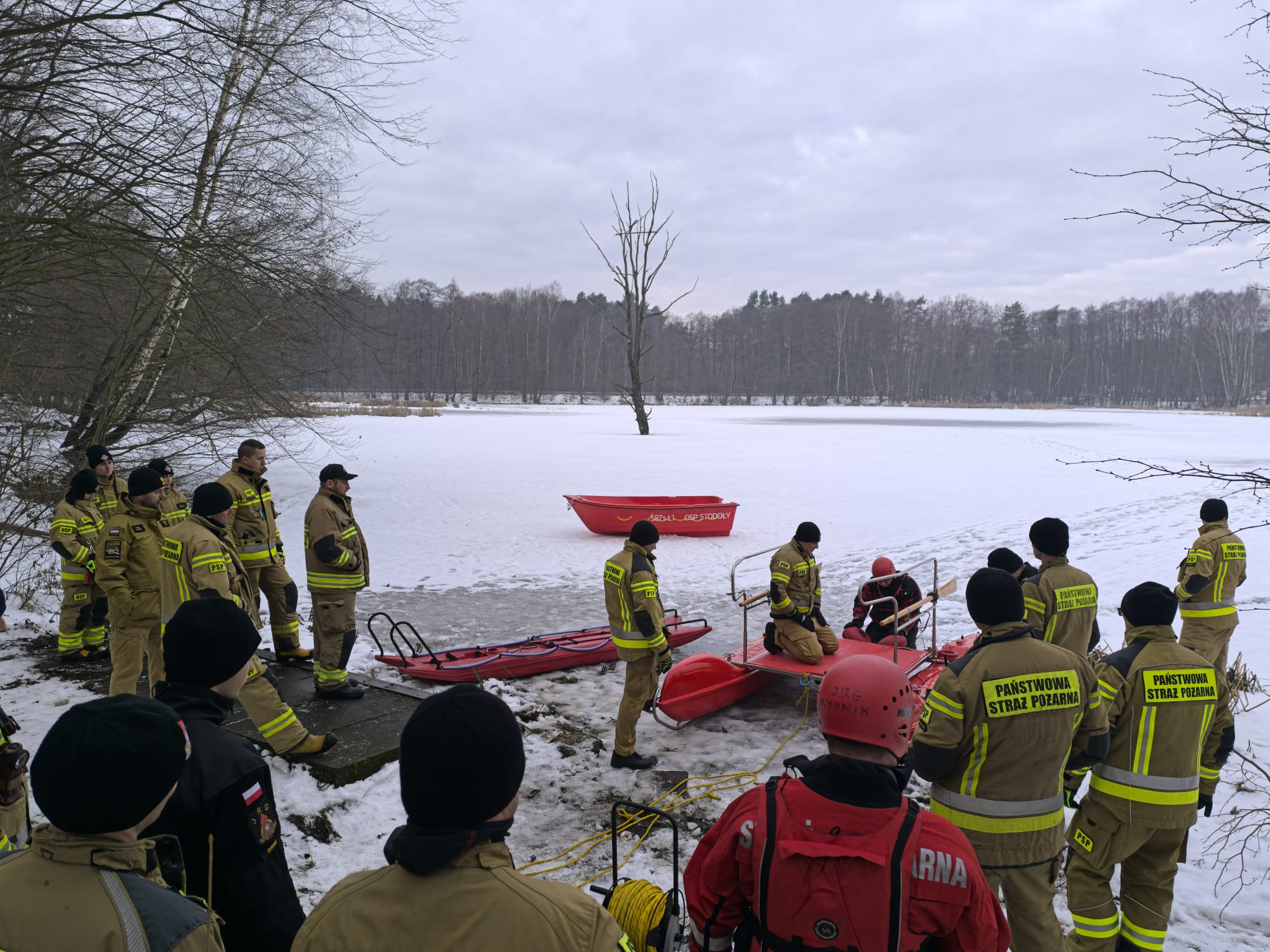 W dniach 14–16 stycznia 2026 r. na terenie zbiornika Gzel strażacy Jednostki Ratowniczo-Gaśniczej w Rybniku przeprowadzili ćwiczenia doskonalące z zakresu ratownictwa na lodzie. Ćwiczenia realizowane były we wszystkich trzech zmianach służbowych JRG, zgodnie z obowiązującymi standardami szkoleniowymi i procedurami ratowniczymi obowiązującymi w działaniach na zamarzniętych akwenach wodnych. Udział w zajęciach miał na celu podniesienie kwalifikacji ratowników w zakresie bezpiecznego i skutecznego prowadzenia działań ratowniczych w warunkach zimowych oraz weryfikację procedur operacyjnych stosowanych podczas tego typu zdarzeń.