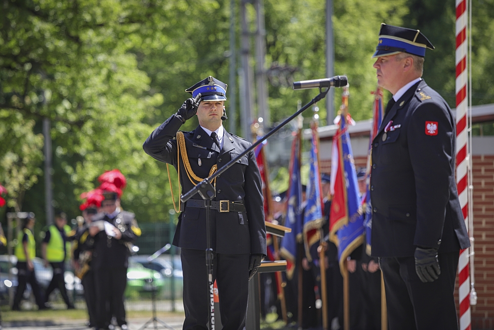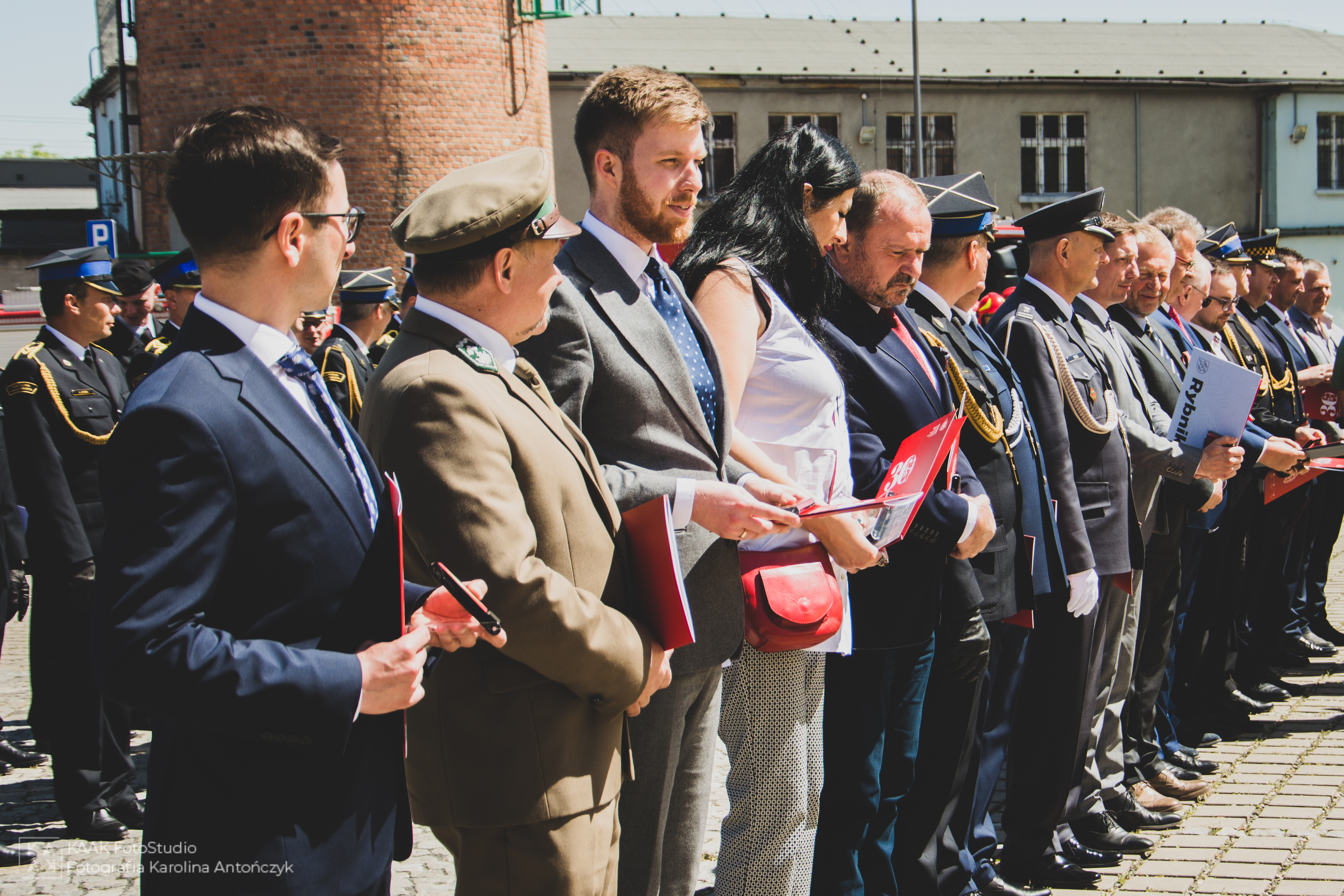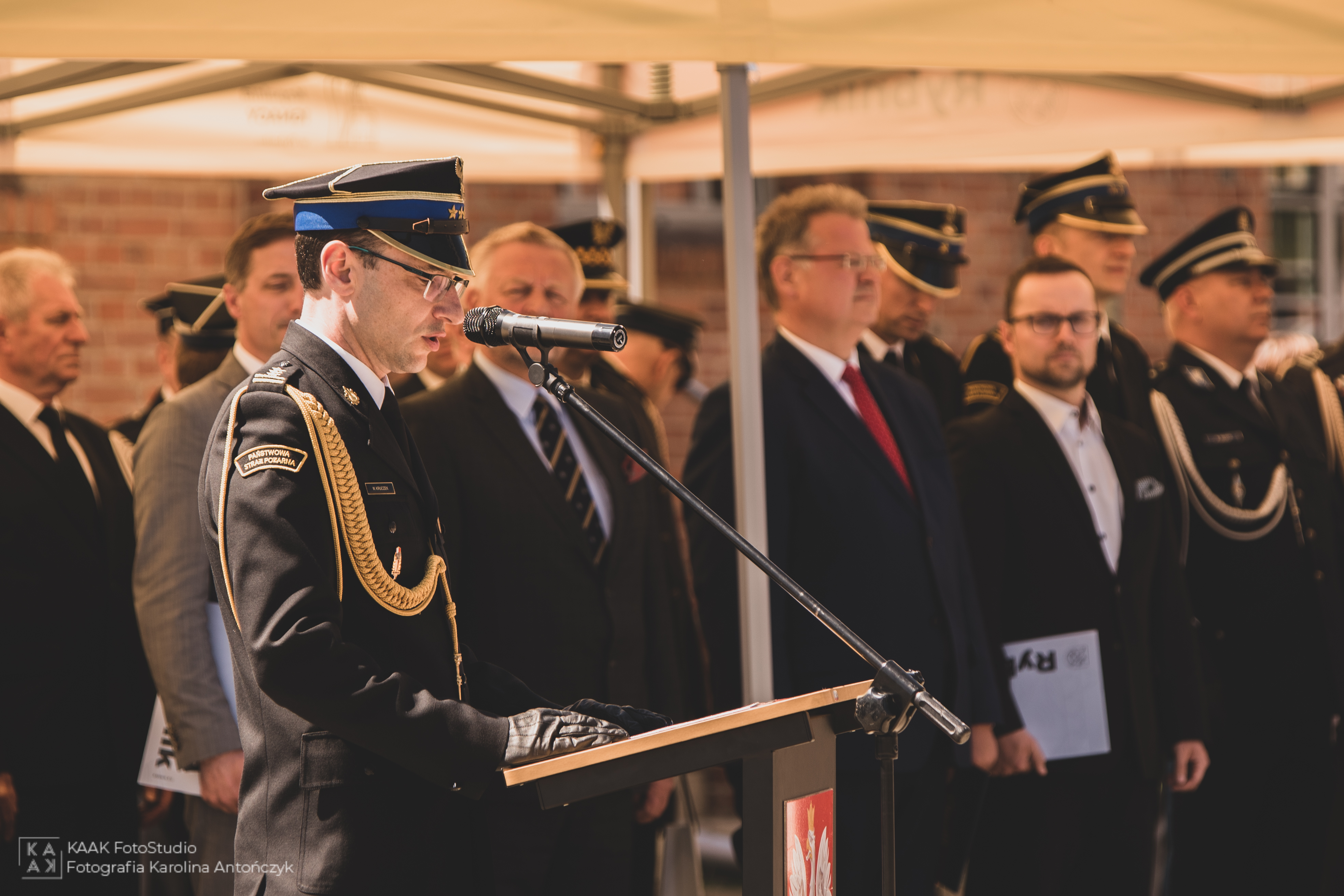Uroczystość rozpoczęła się złożeniem meldunku przez dowódcę uroczystości kpt. Mateusza Kuśkę Zastępcy Śląskiego Komendanta Wojewódzkiego PSP st. bryg. Mirosławowi Synowcowi. Po podniesieniu flagi państwowej na maszt i odegraniu hymnu państwowego Komendant Miejski Państwowej Straży Pożarnej w Rybniku st. bryg. Wojciech Kruczek przywitał zaproszonych gości oraz podziękował strażakom za ich codzienną służbę.