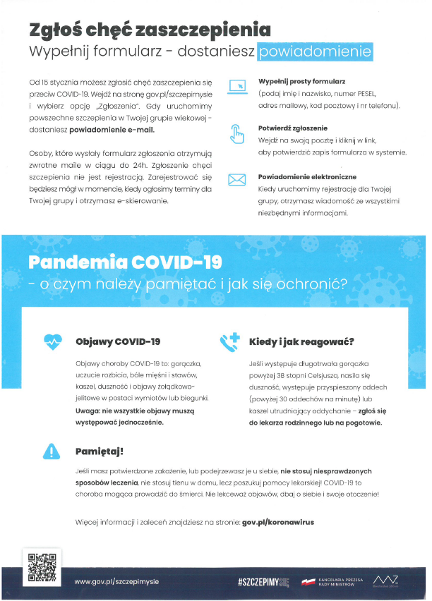 Materiały mają przede wszystkim trafić do mieszkańców wykluczonych cyfrowo, którzy nie korzystają z zasobów Internetu, często są samotni lub nie radzą sobie z informacją z innych źródeł. Na ulotkach znalazły się m.in. informacje o tym, jak zapisać się na szczepienie.