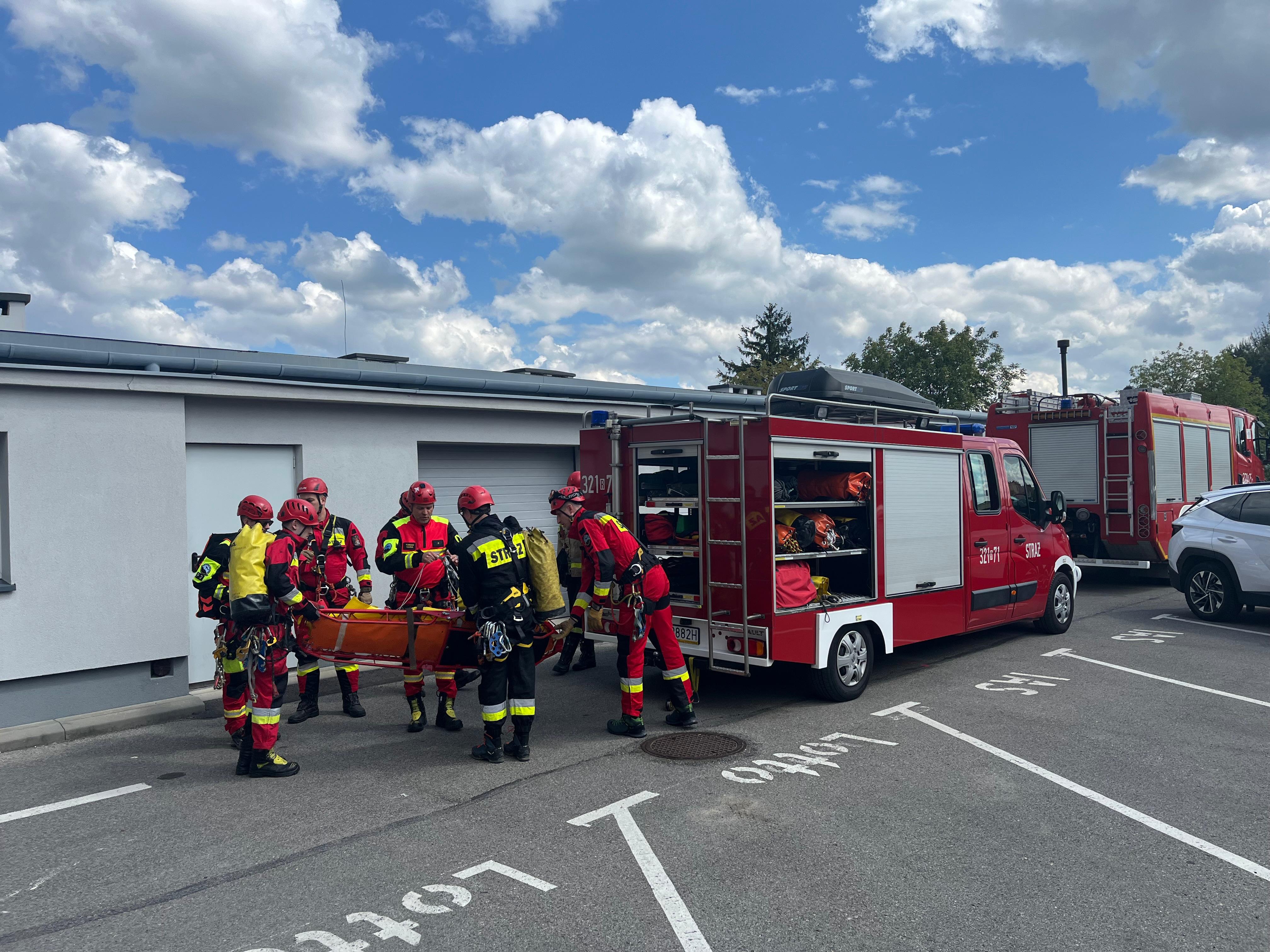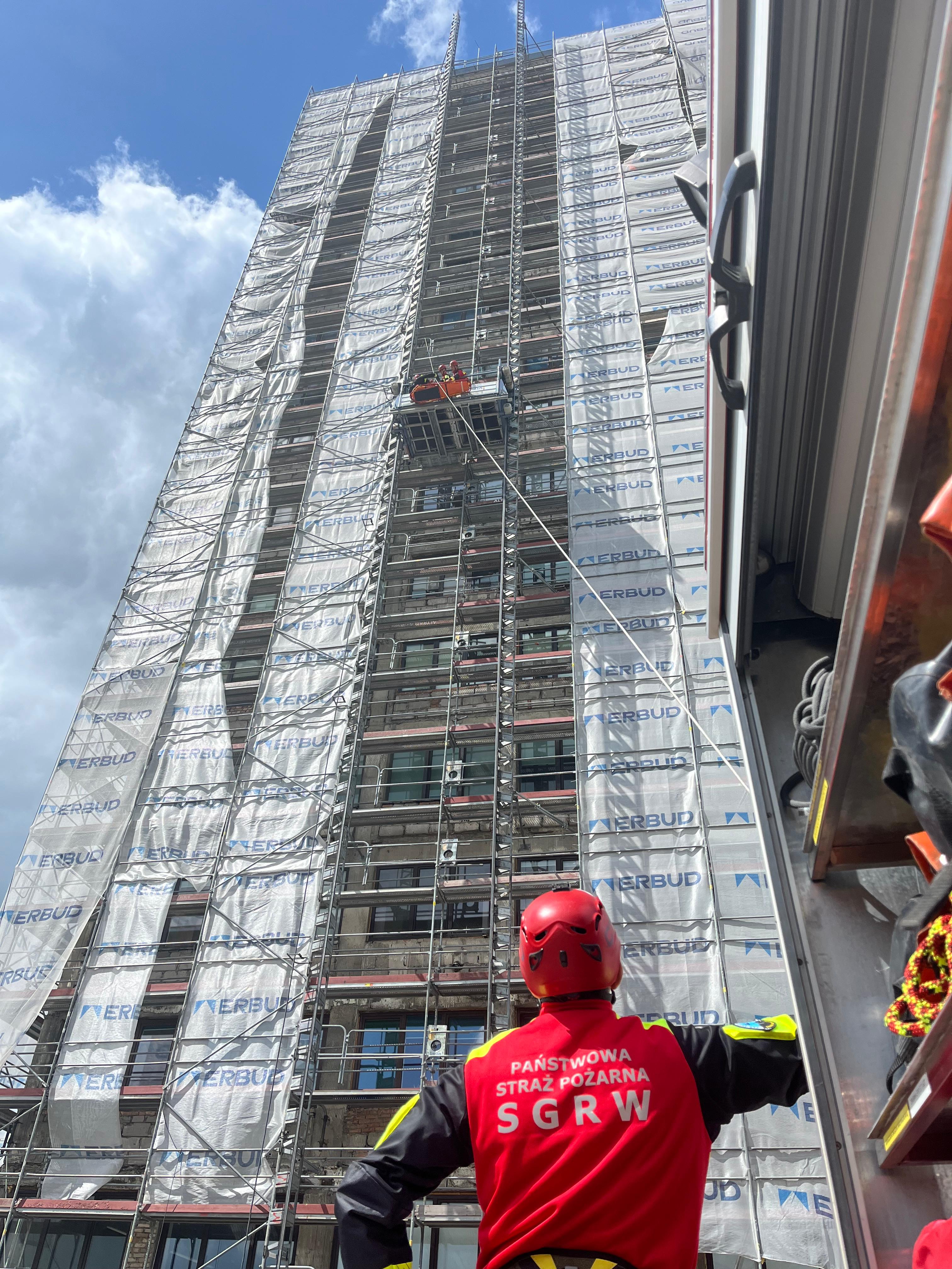 Ćwiczenia SGRW Rzeszów 1 na budynku wysokim w Rzeszowie przy ul. Geodetów